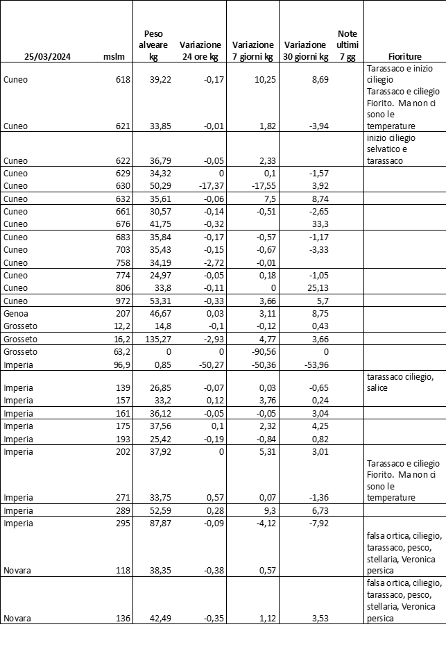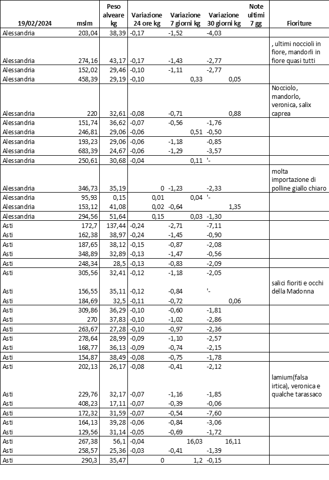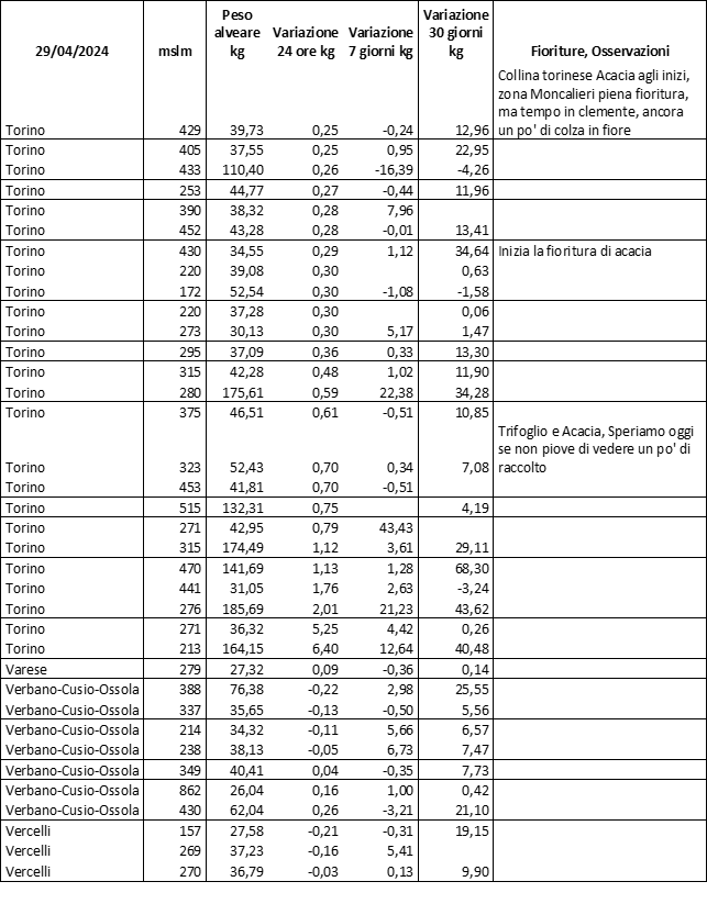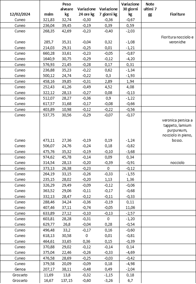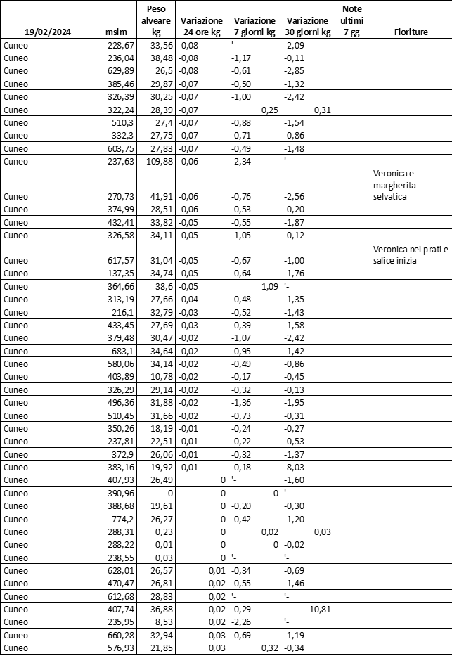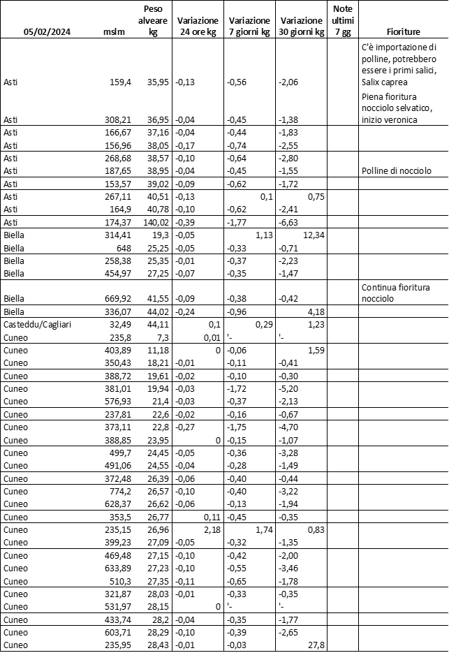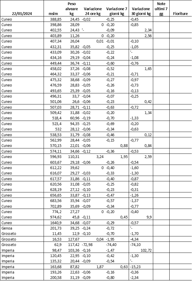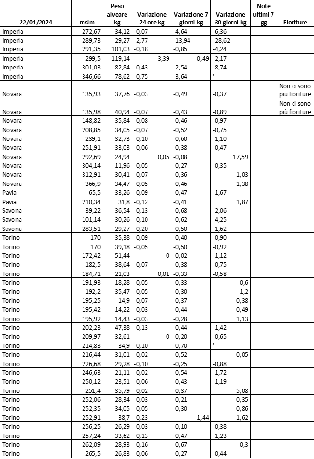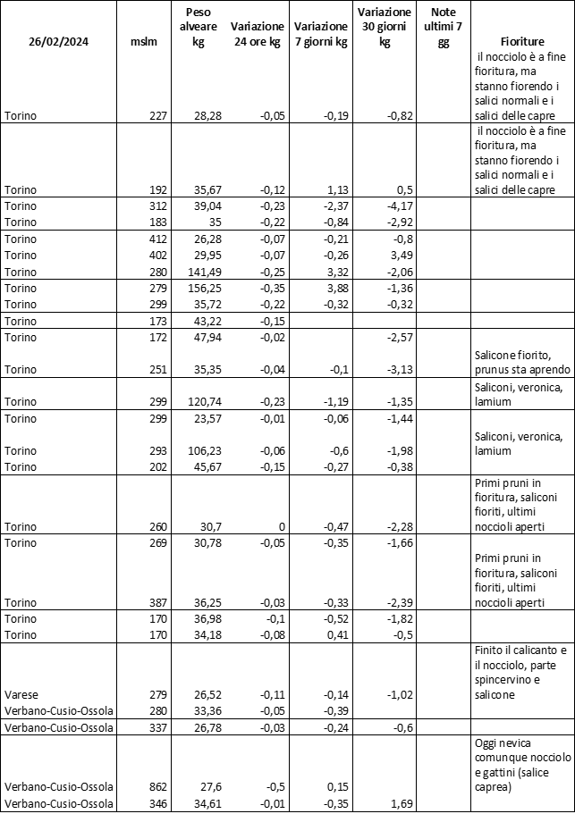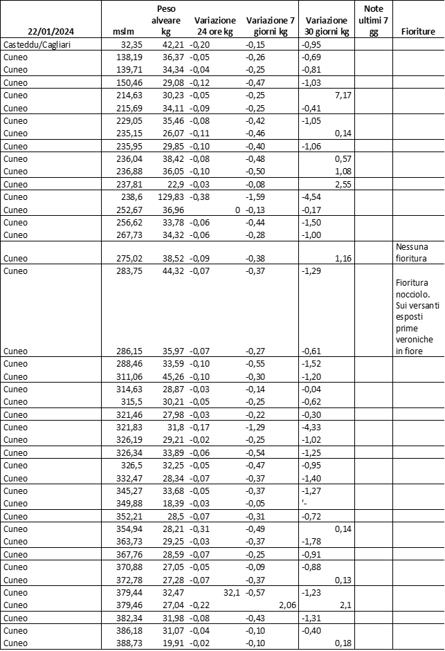 E’ prevista una comunicazione periodica a livello provinciale e altimetrica dei raccolti/consumi degli alveari.