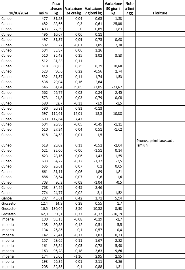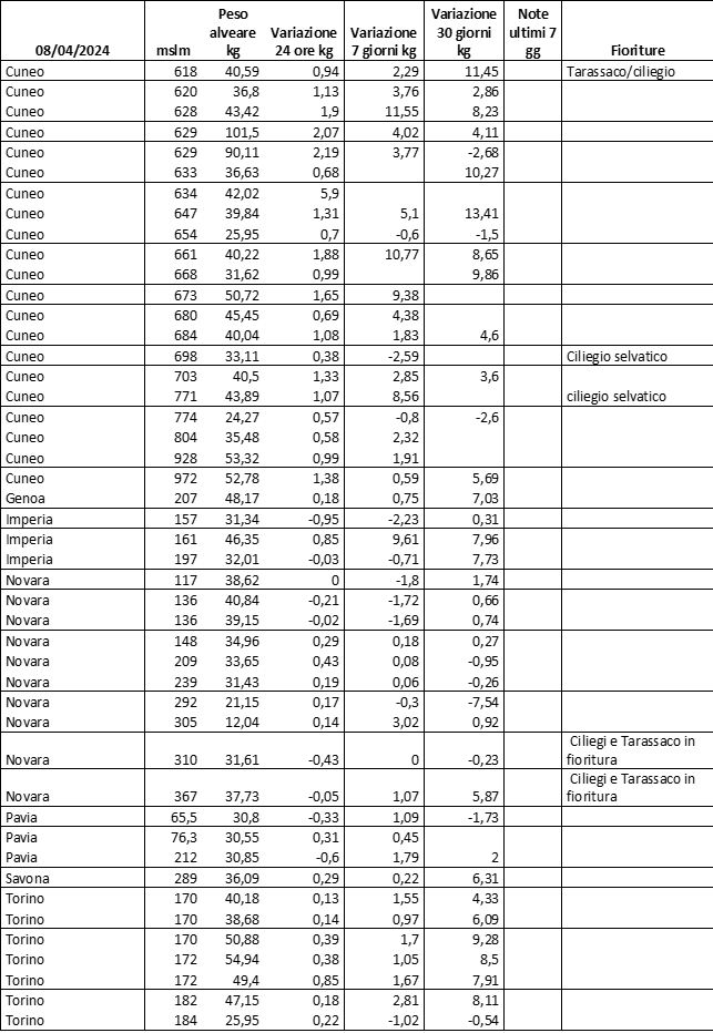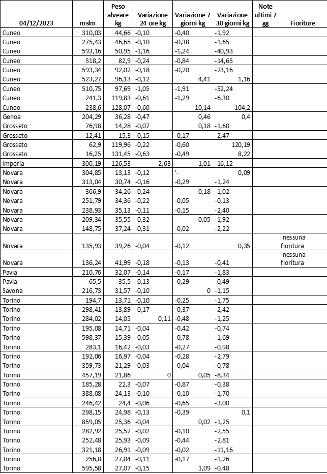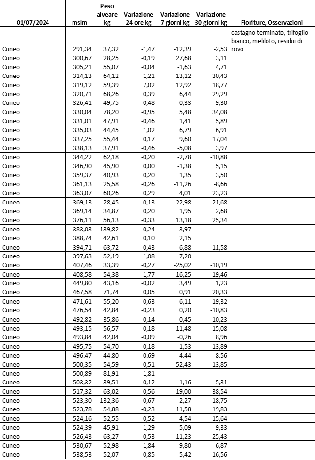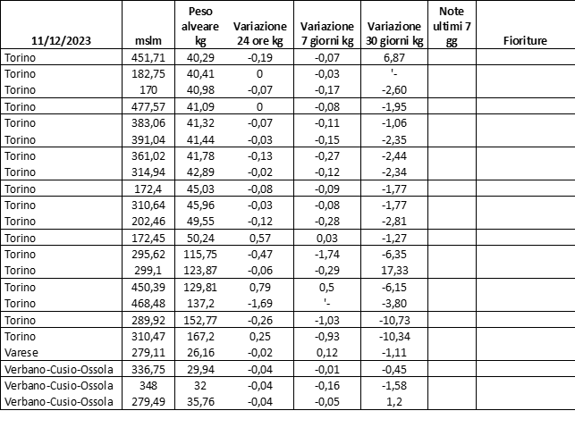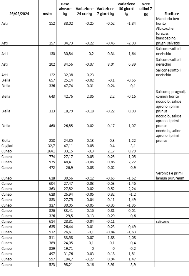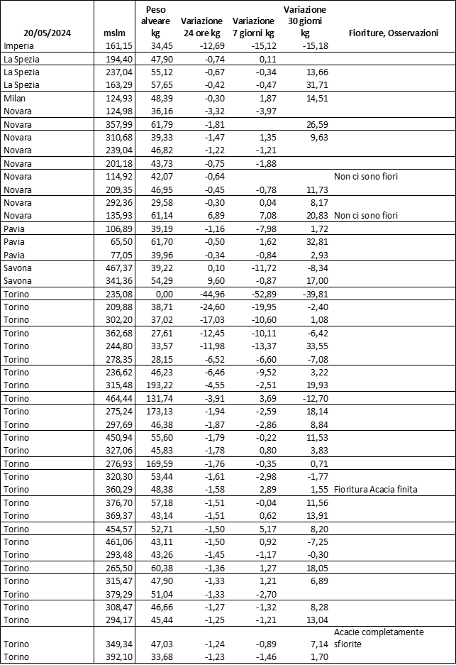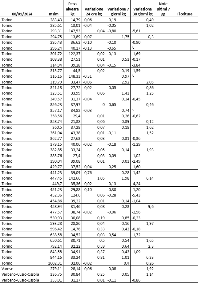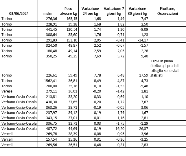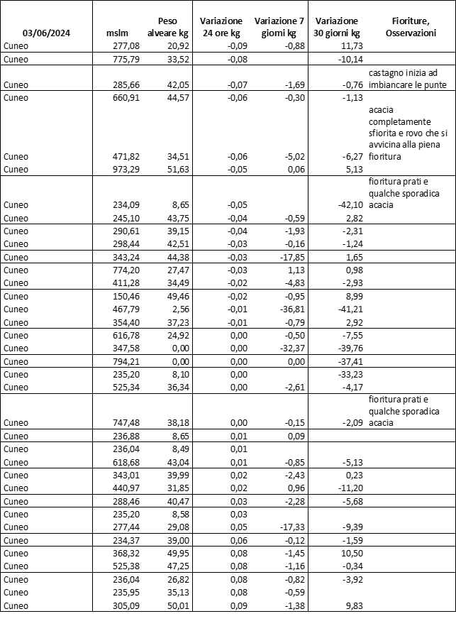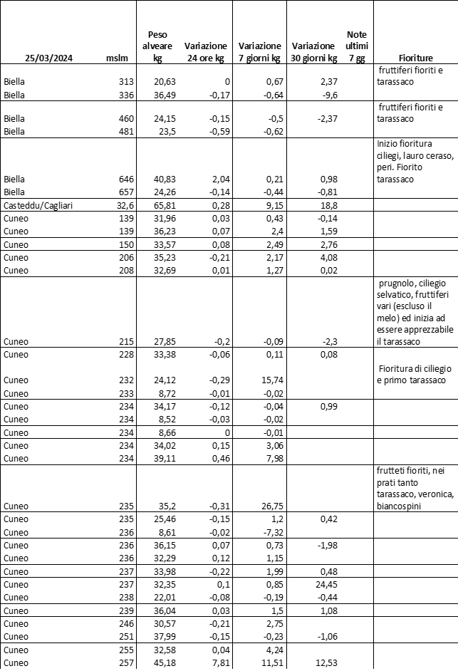 E’ prevista una comunicazione periodica a livello provinciale e altimetrica dei raccolti/consumi degli alveari.