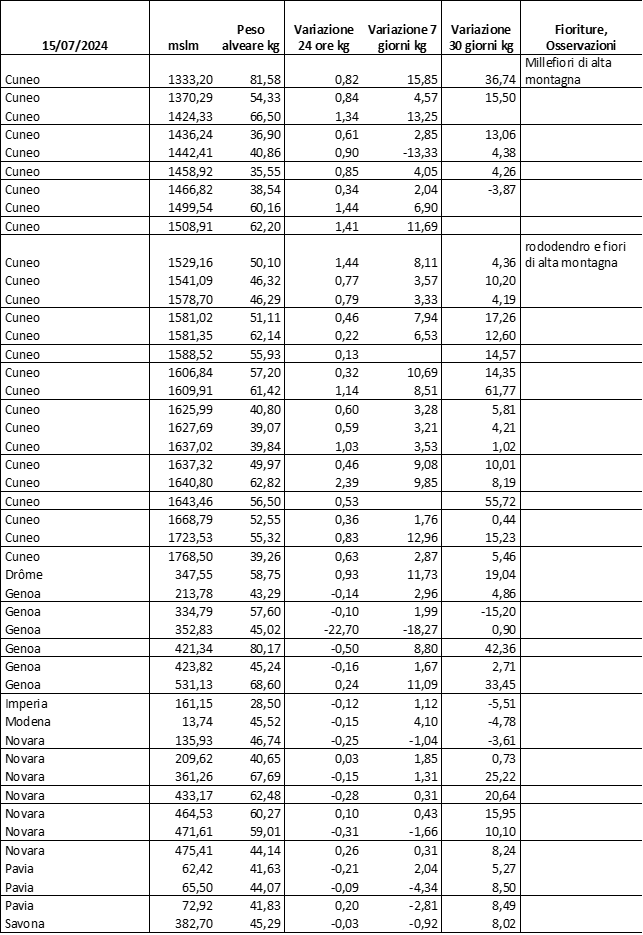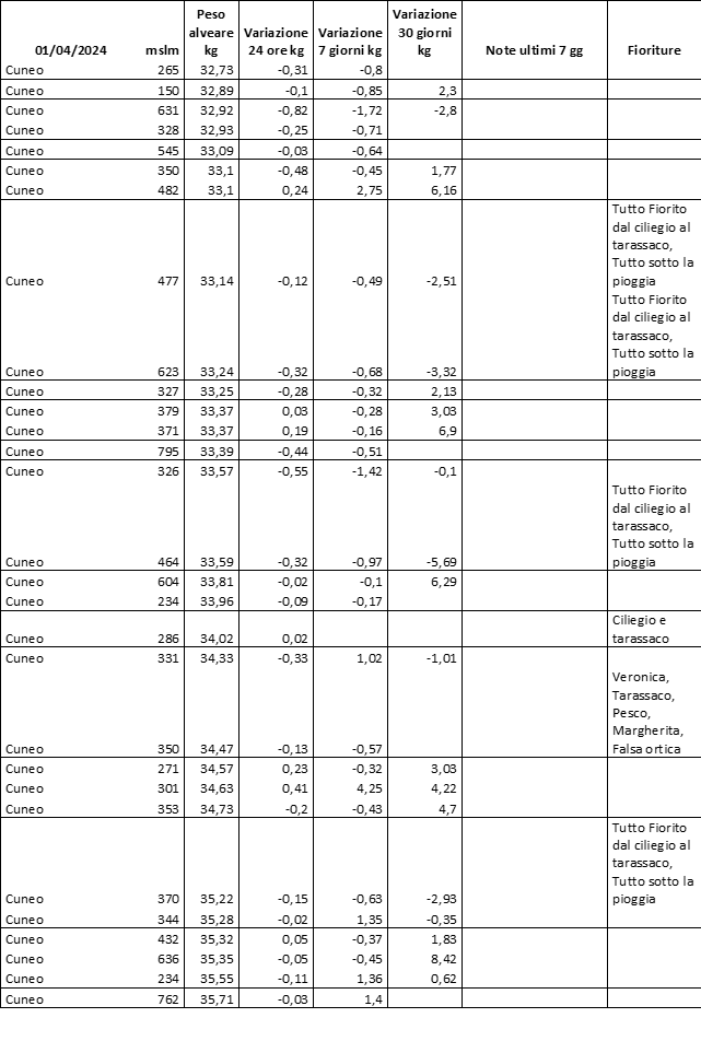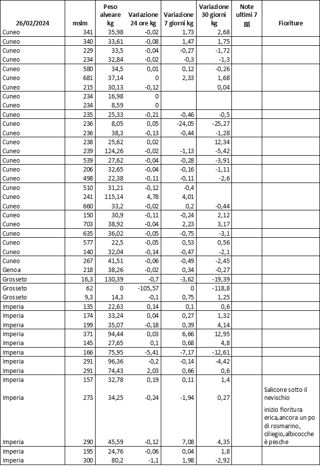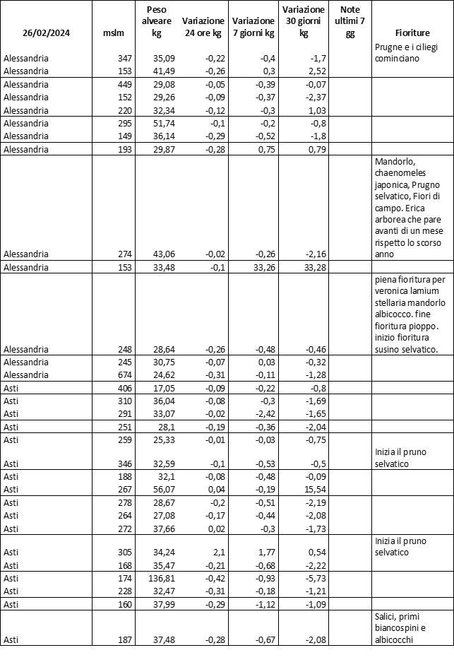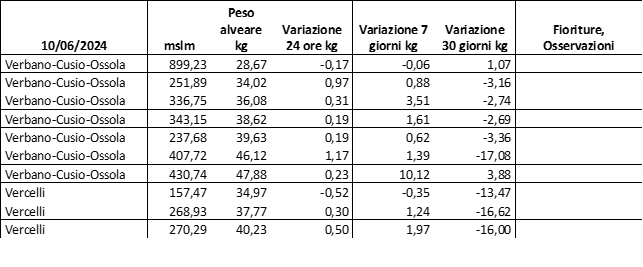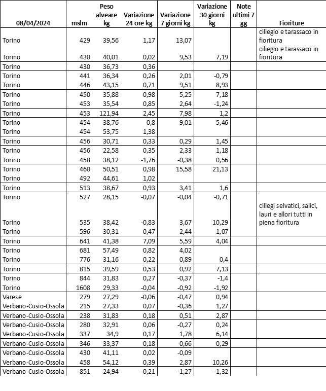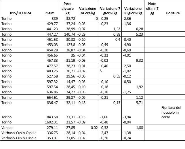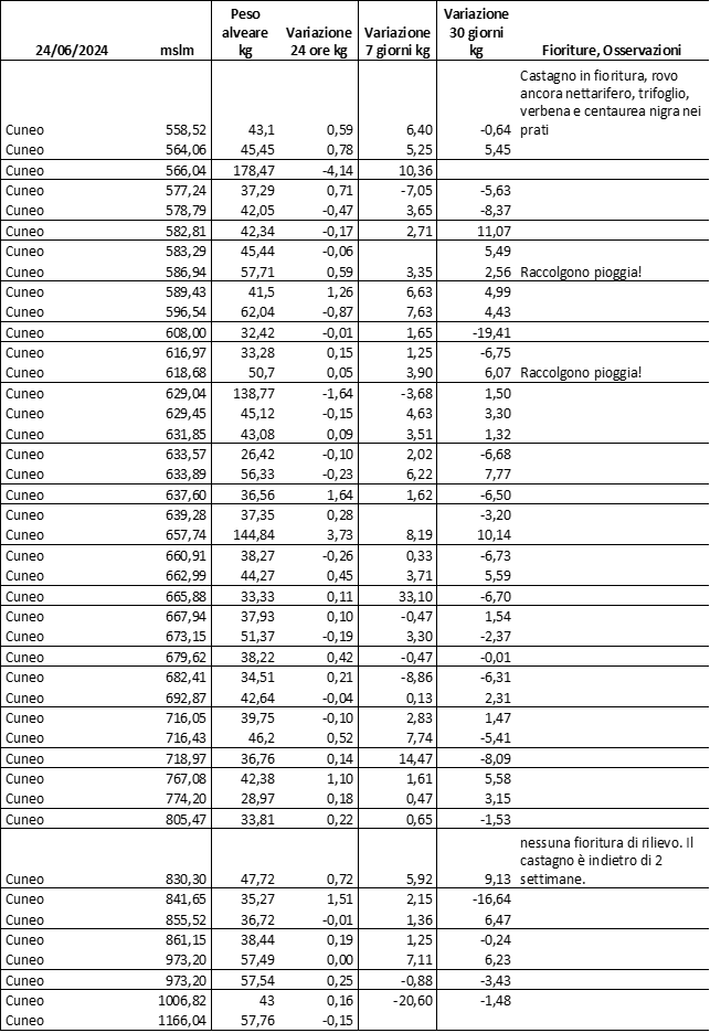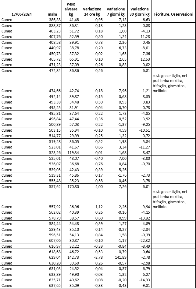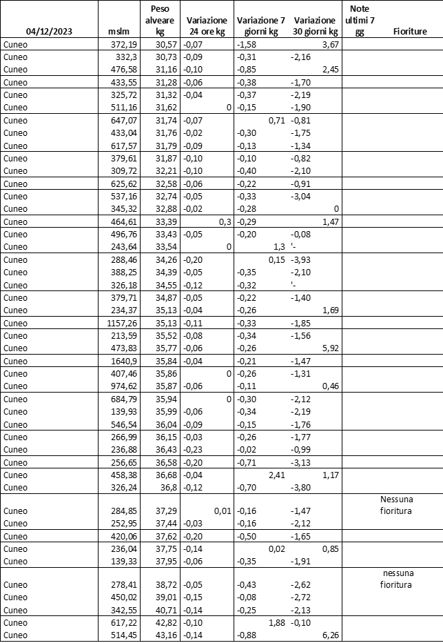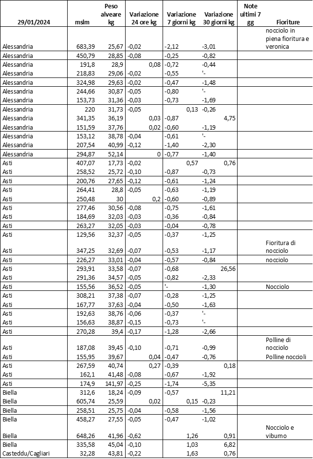 E’ prevista una comunicazione periodica a livello provinciale e altimetrica dei raccolti/consumi degli alveari.