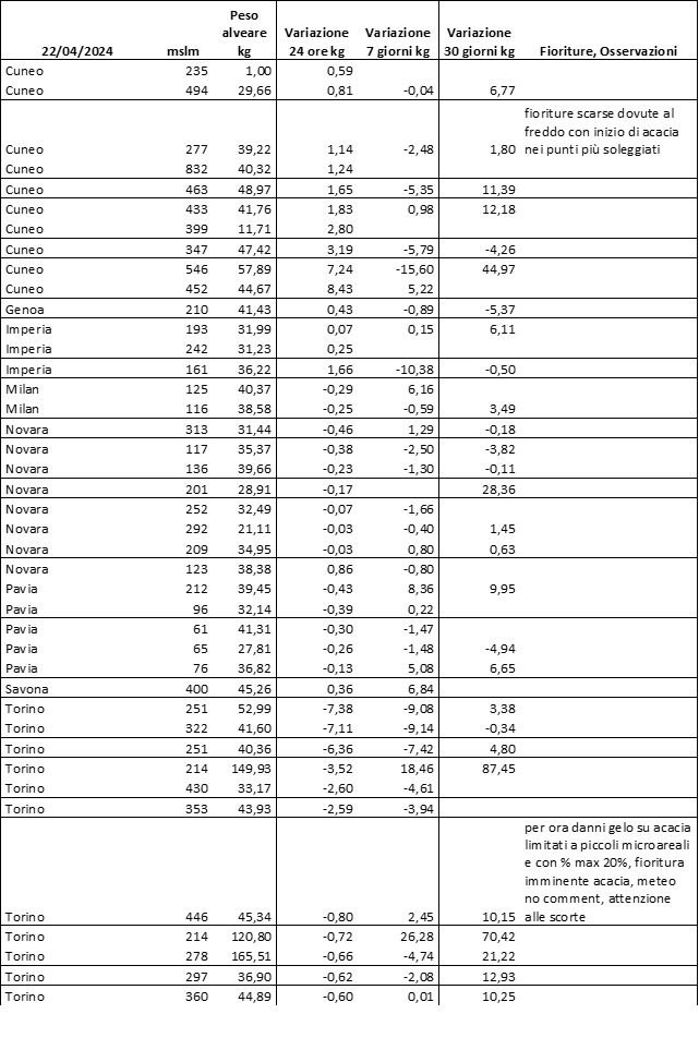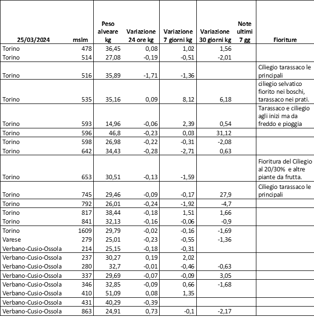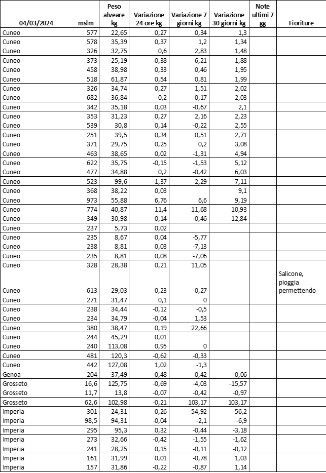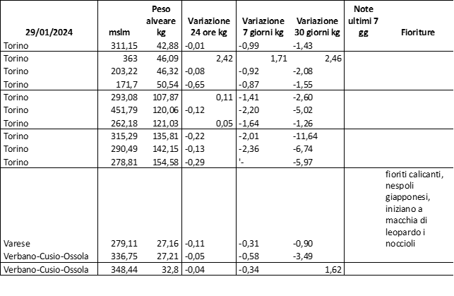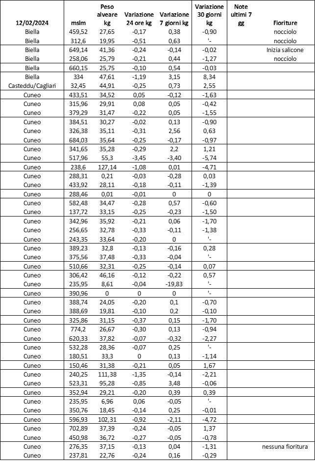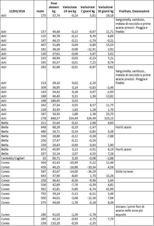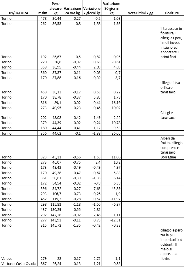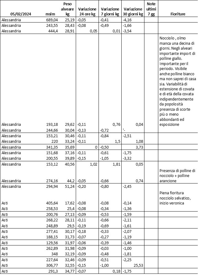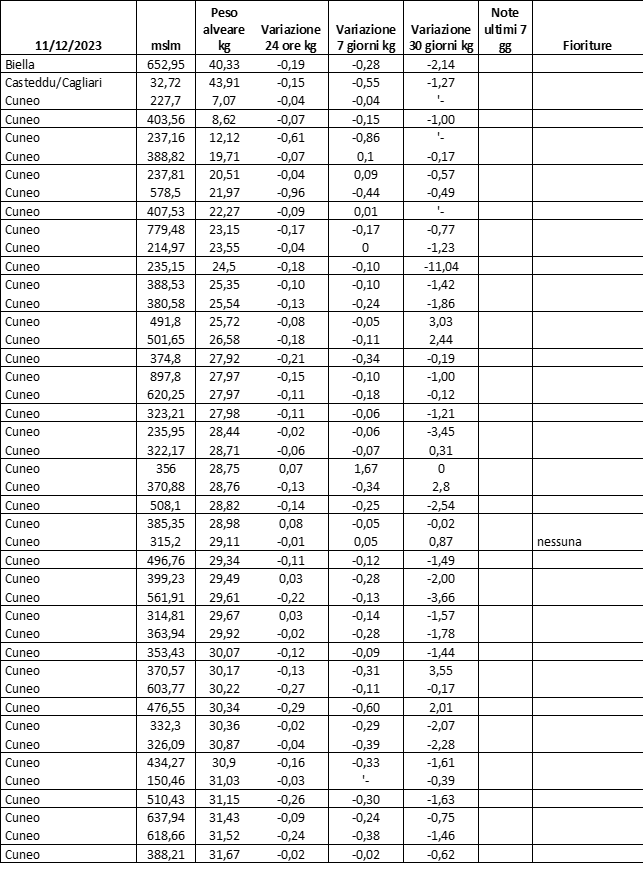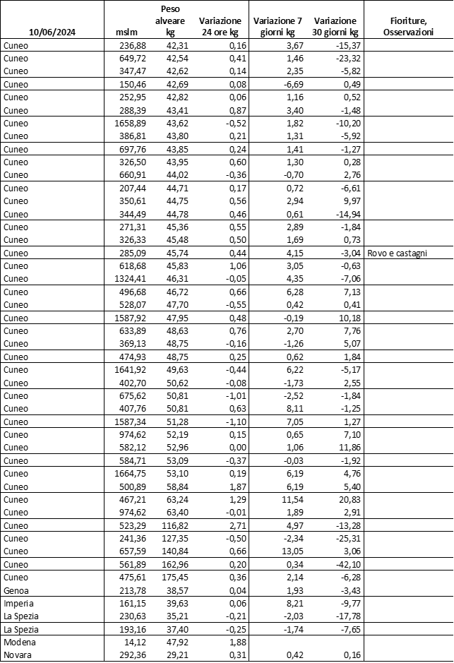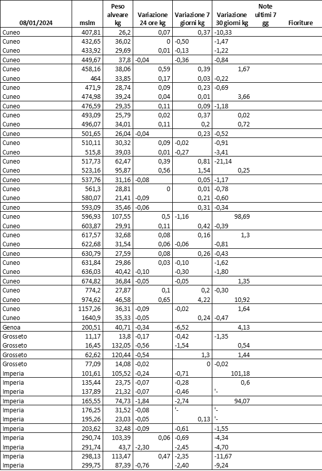 E’ prevista una comunicazione periodica a livello provinciale e altimetrica dei raccolti/consumi degli alveari.