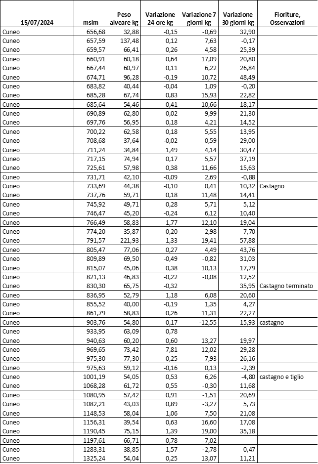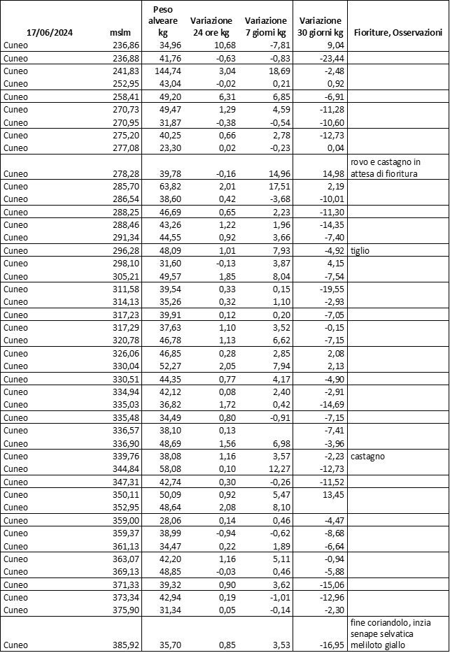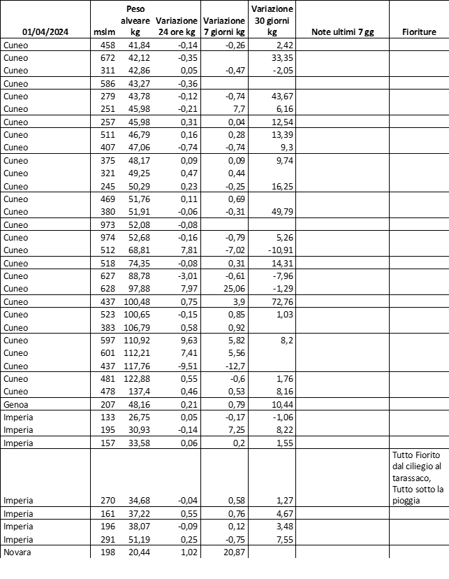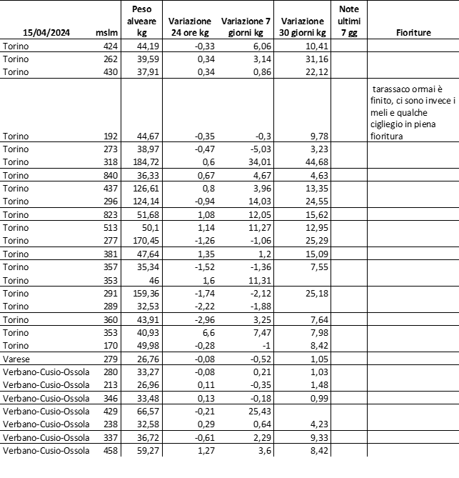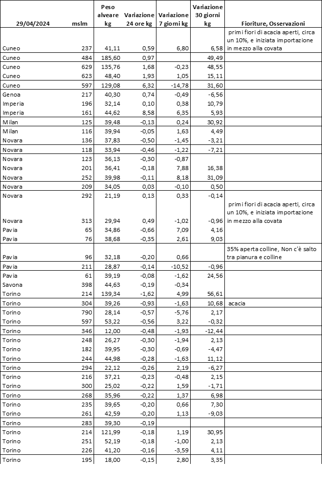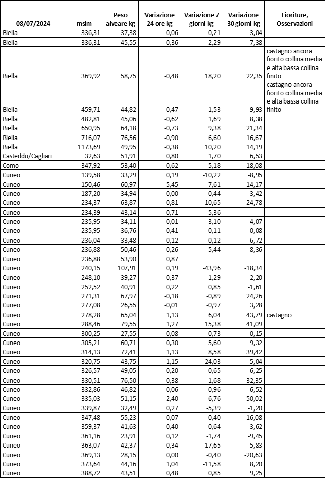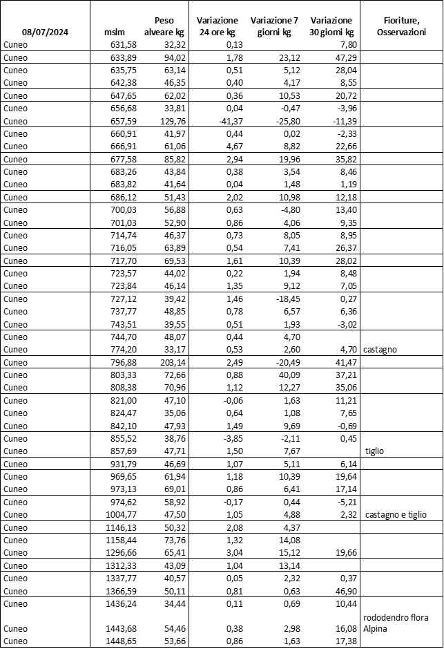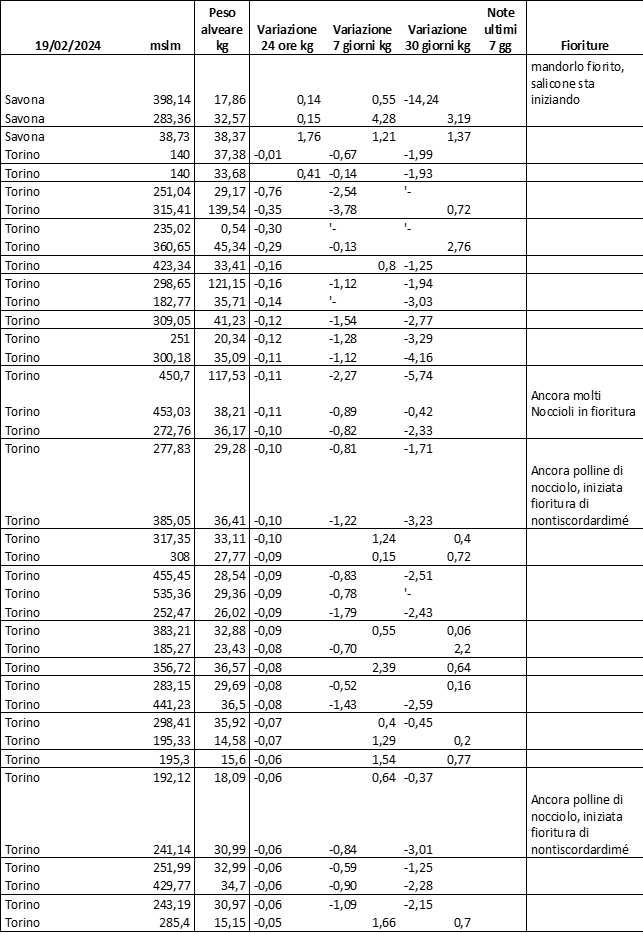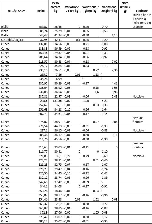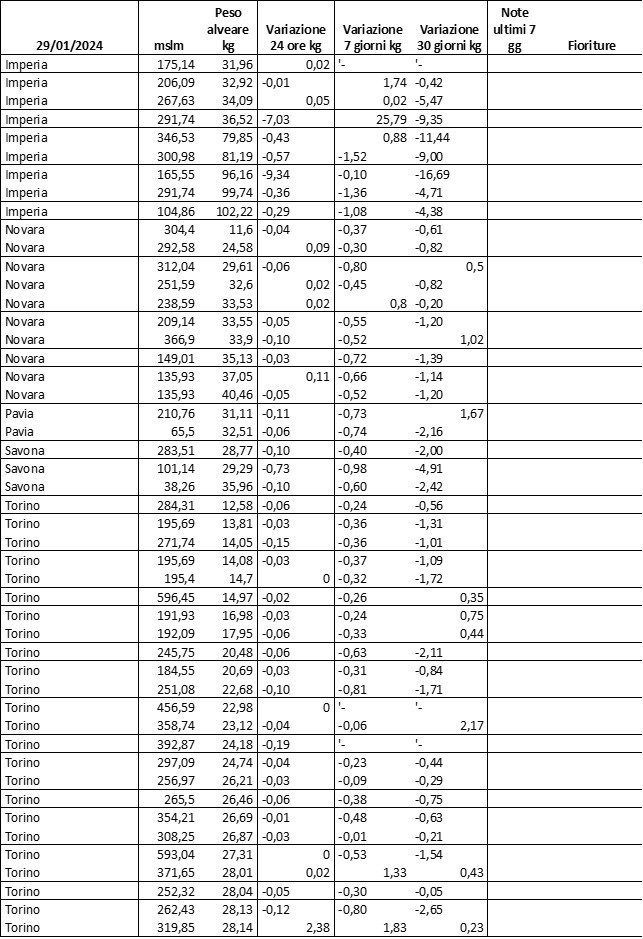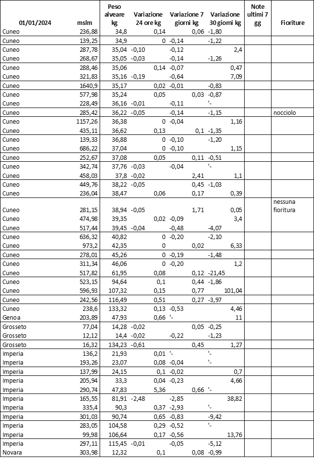 E’ prevista una comunicazione periodica a livello provinciale e altimetrica dei raccolti/consumi degli alveari.