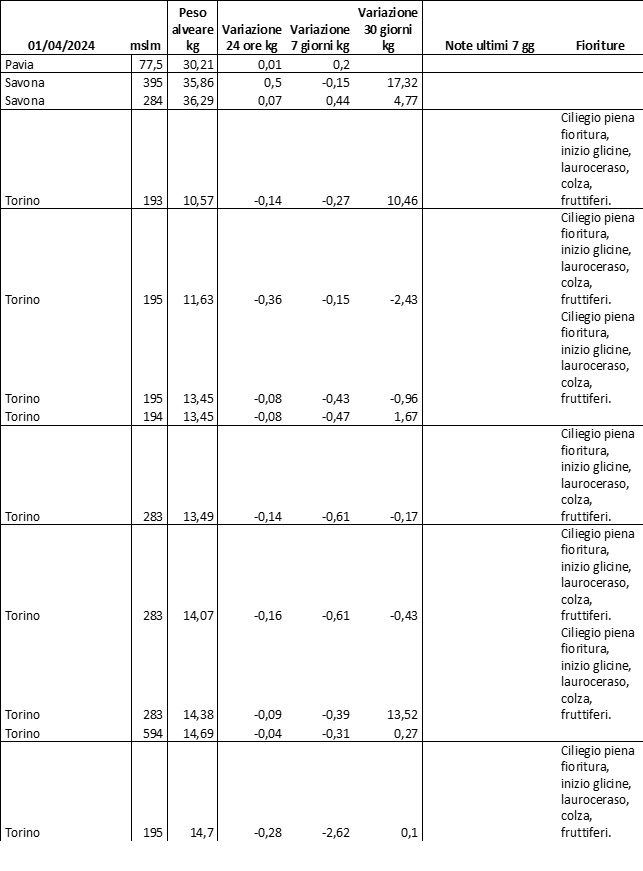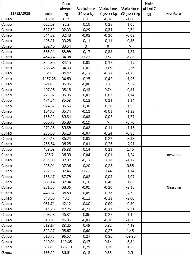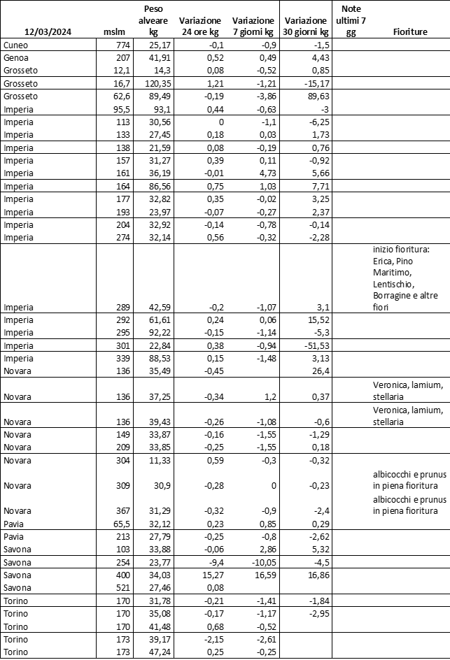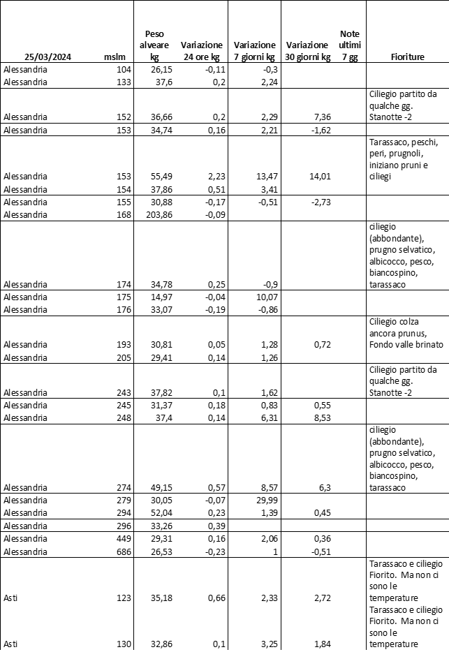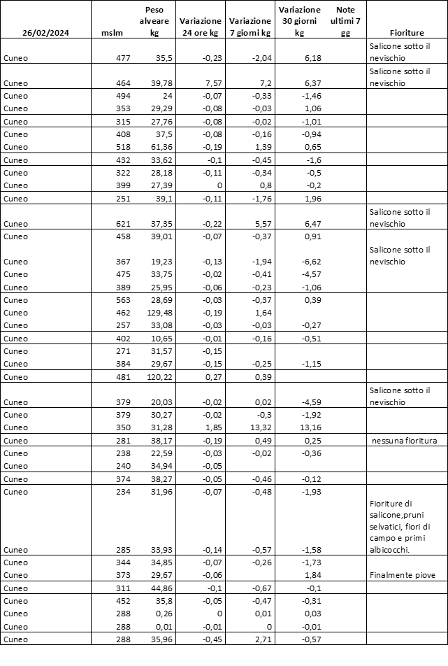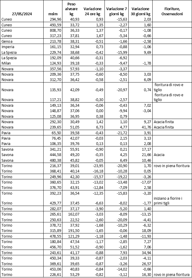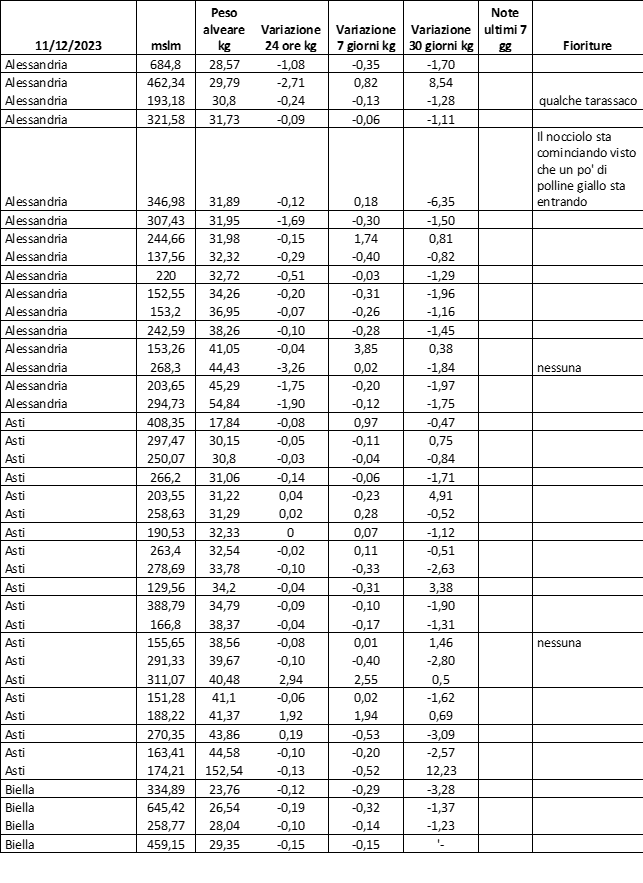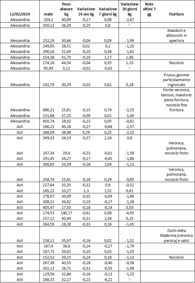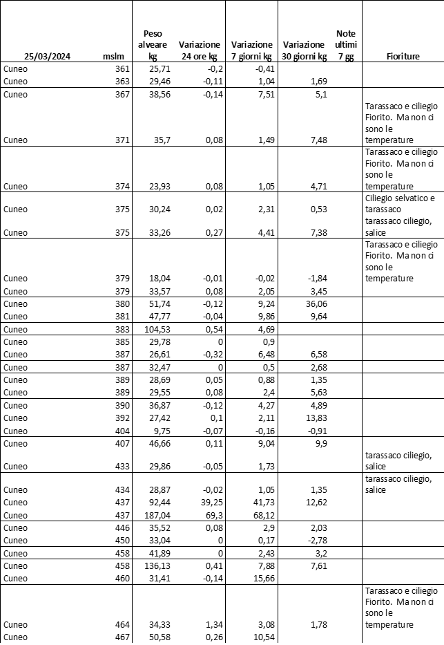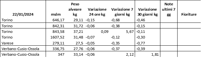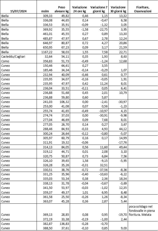 E’ prevista una comunicazione periodica a livello provinciale e altimetrica dei raccolti/consumi degli alveari.