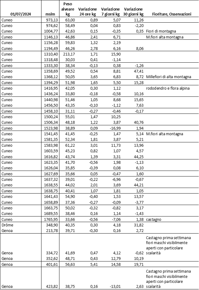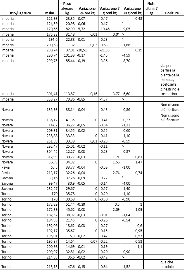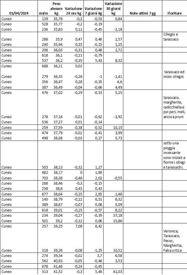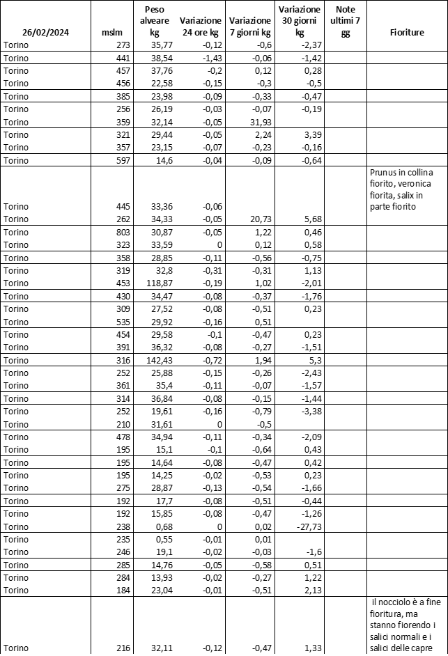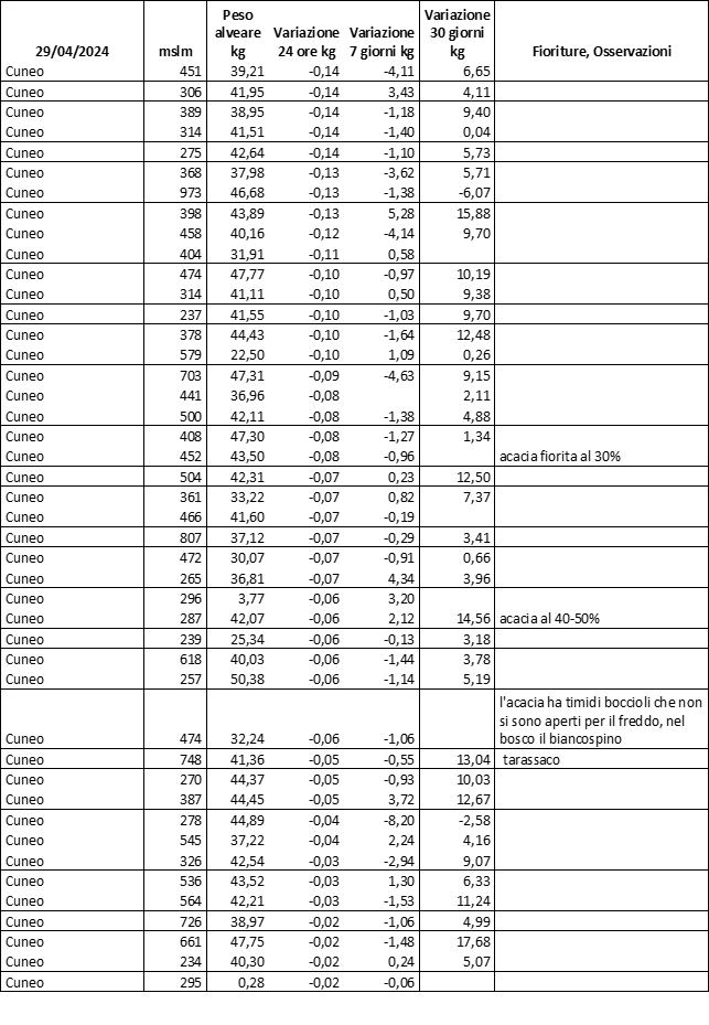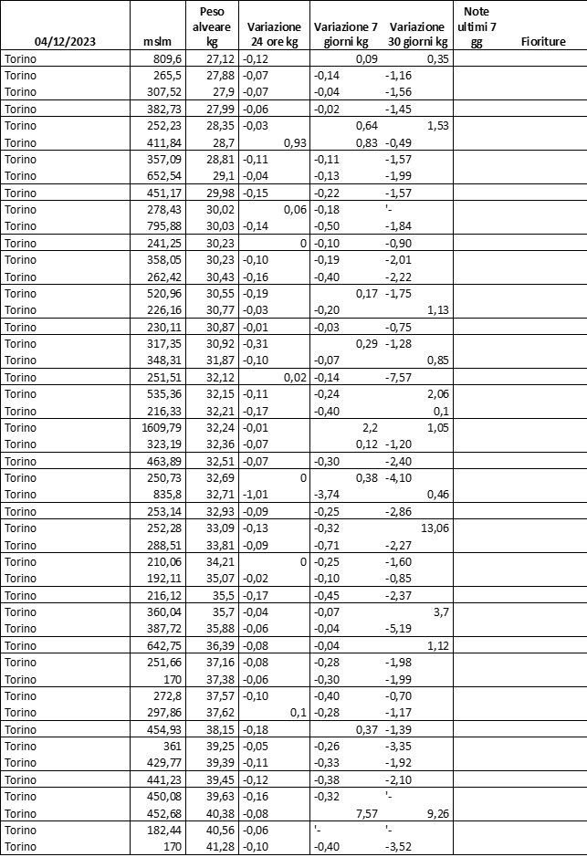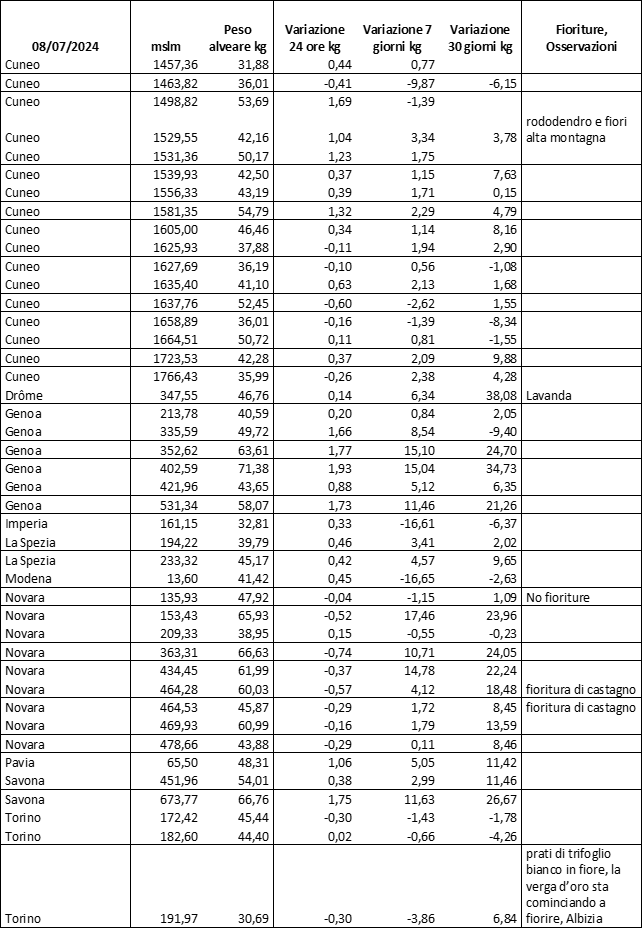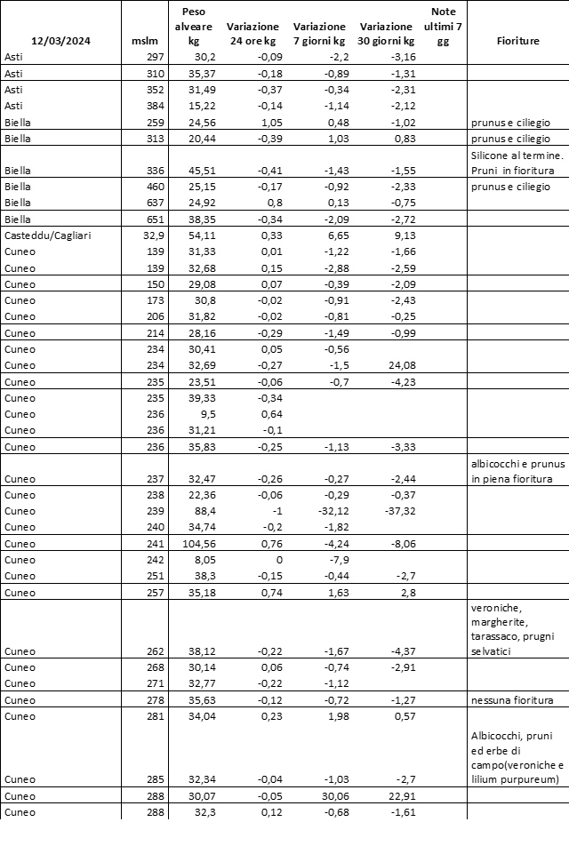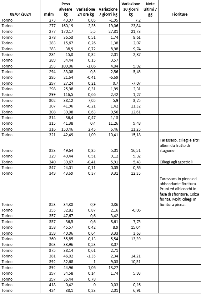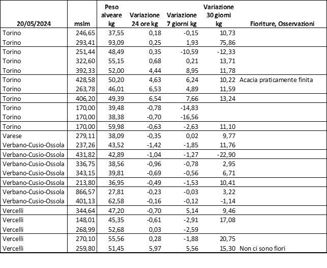 E’ prevista una comunicazione periodica a livello provinciale e altimetrica dei raccolti/consumi degli alveari.