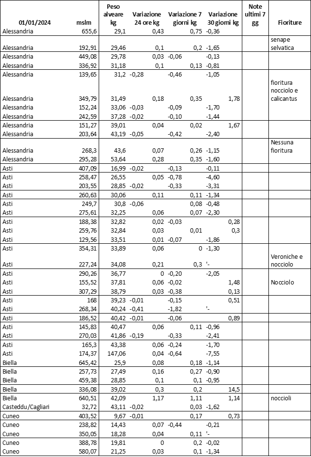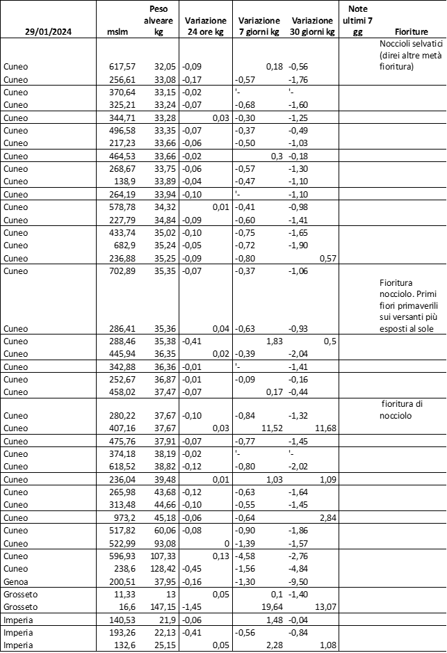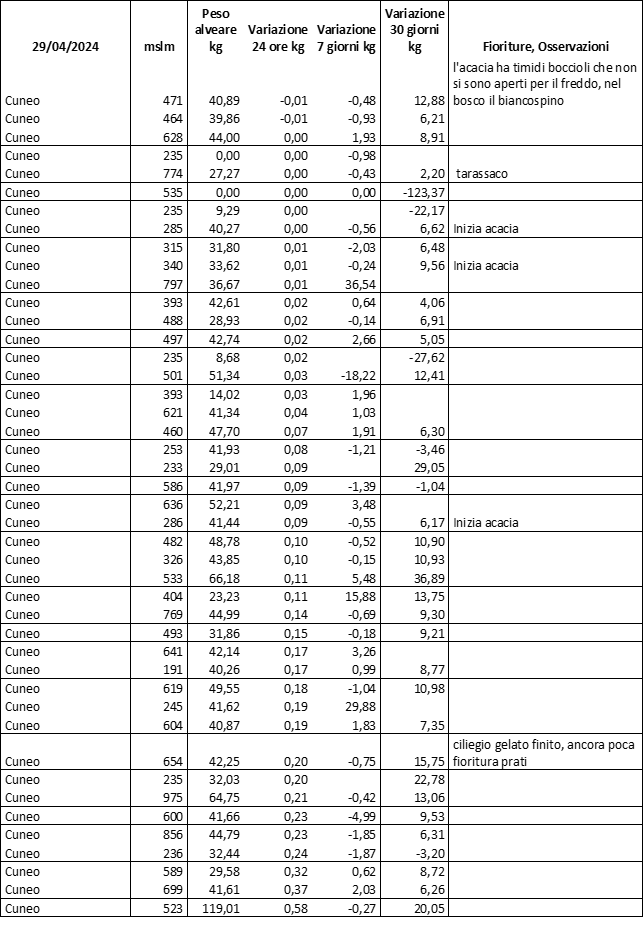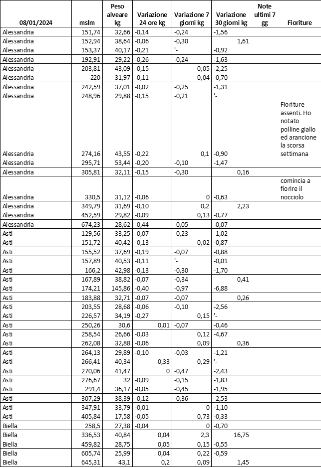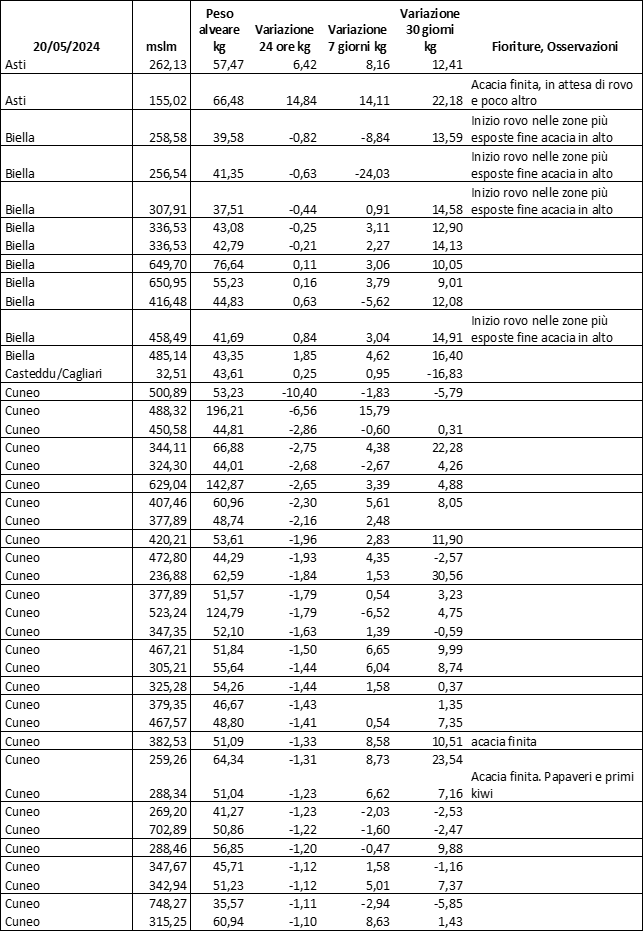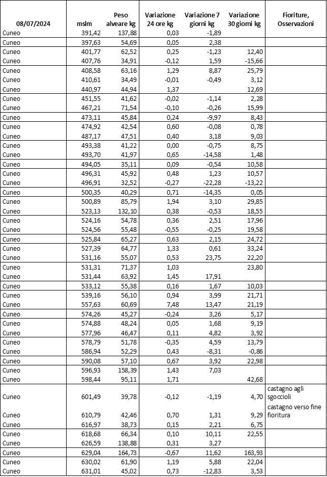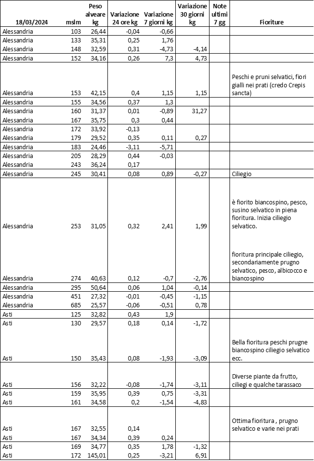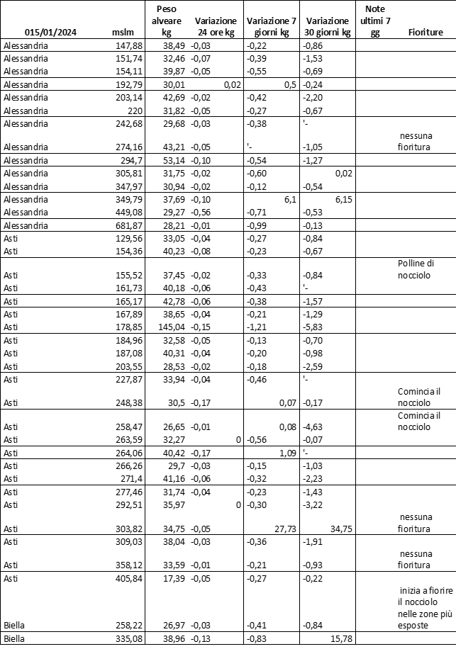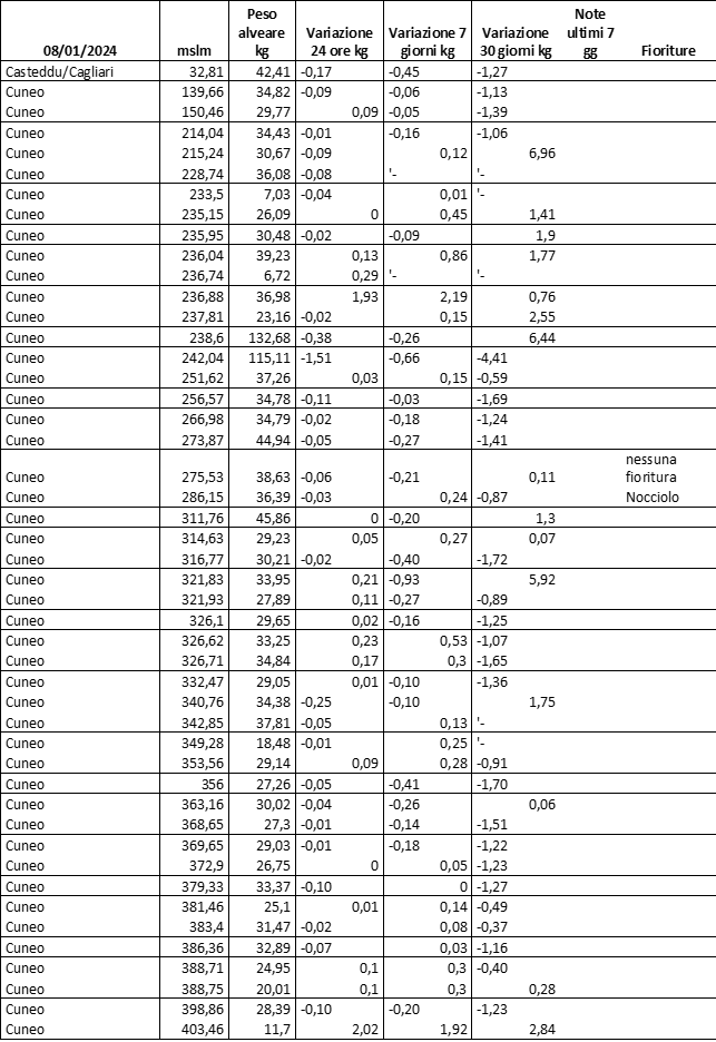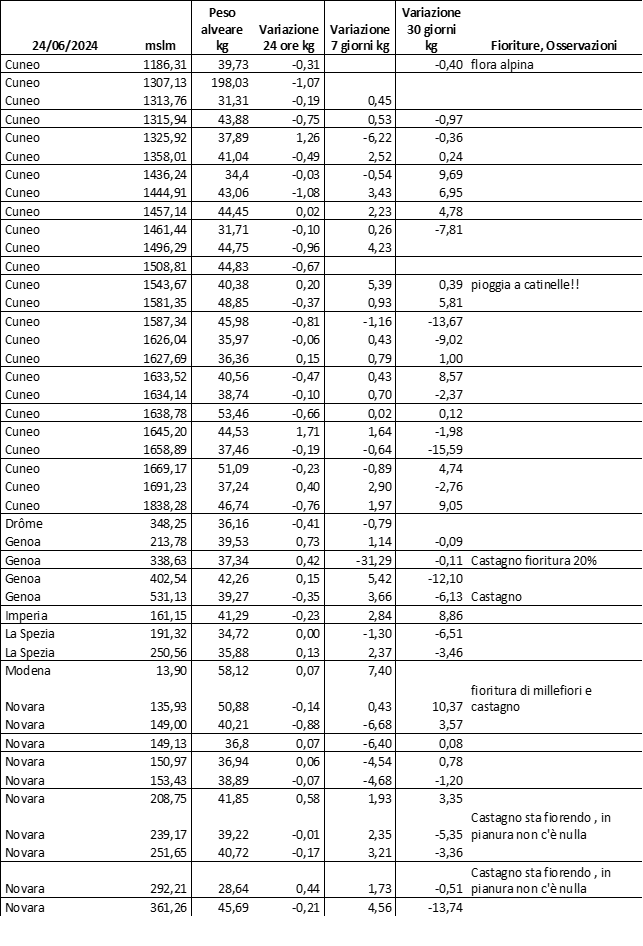 E’ prevista una comunicazione periodica a livello provinciale e altimetrica dei raccolti/consumi degli alveari.