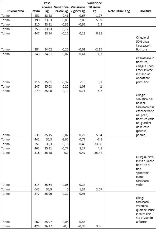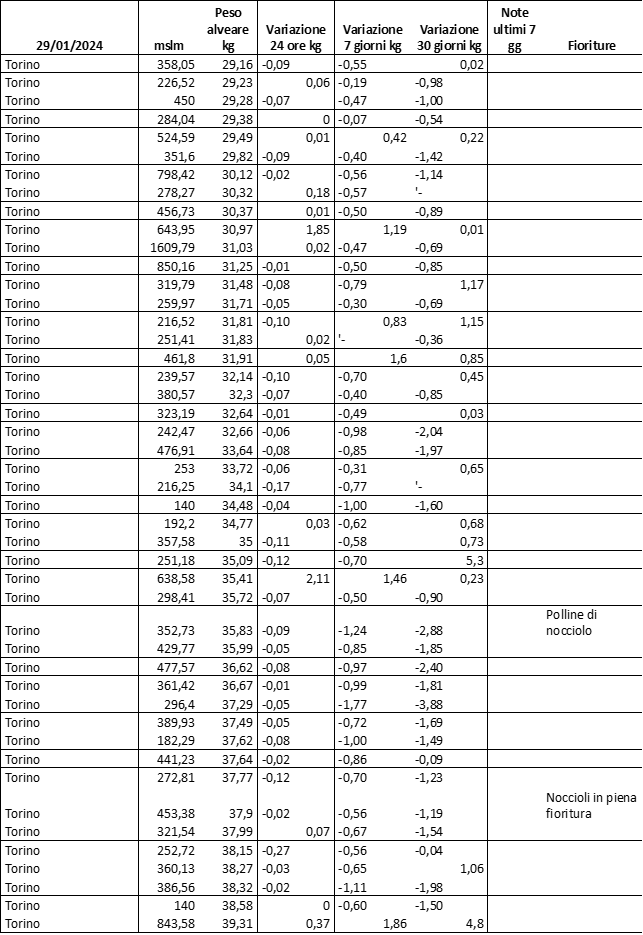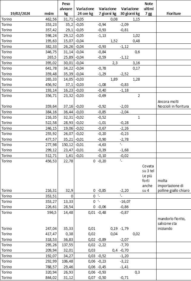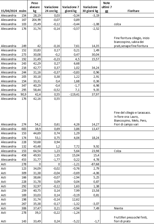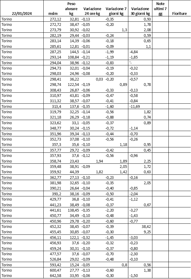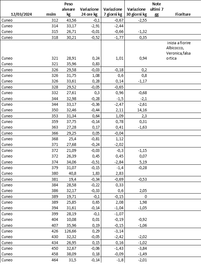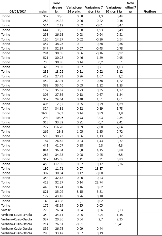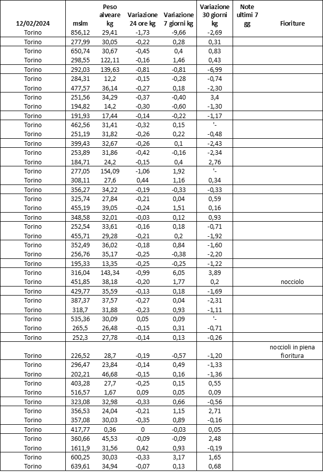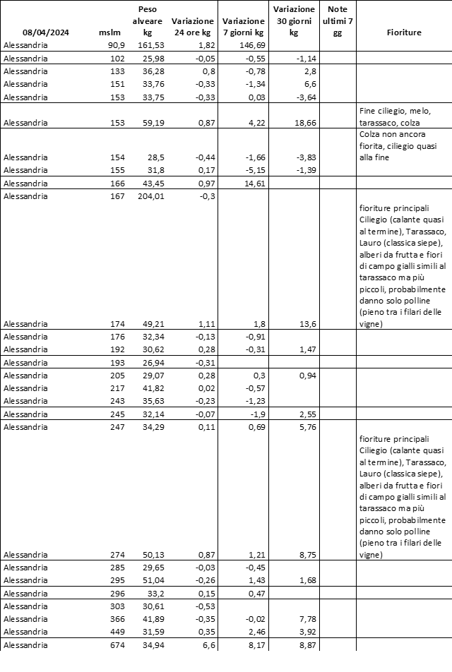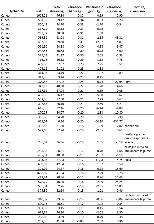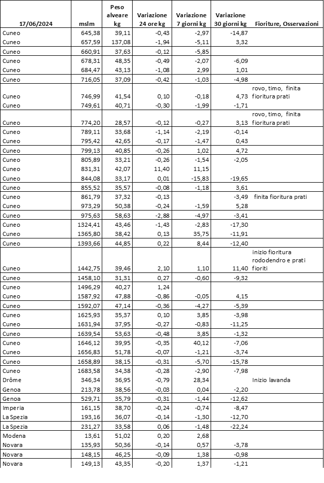 E’ prevista una comunicazione periodica a livello provinciale e altimetrica dei raccolti/consumi degli alveari.