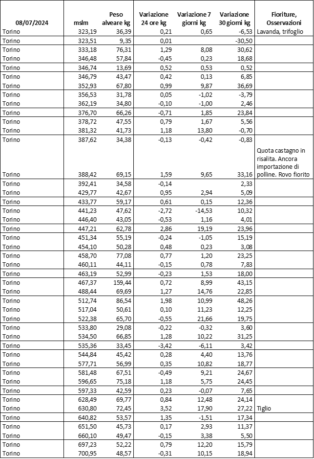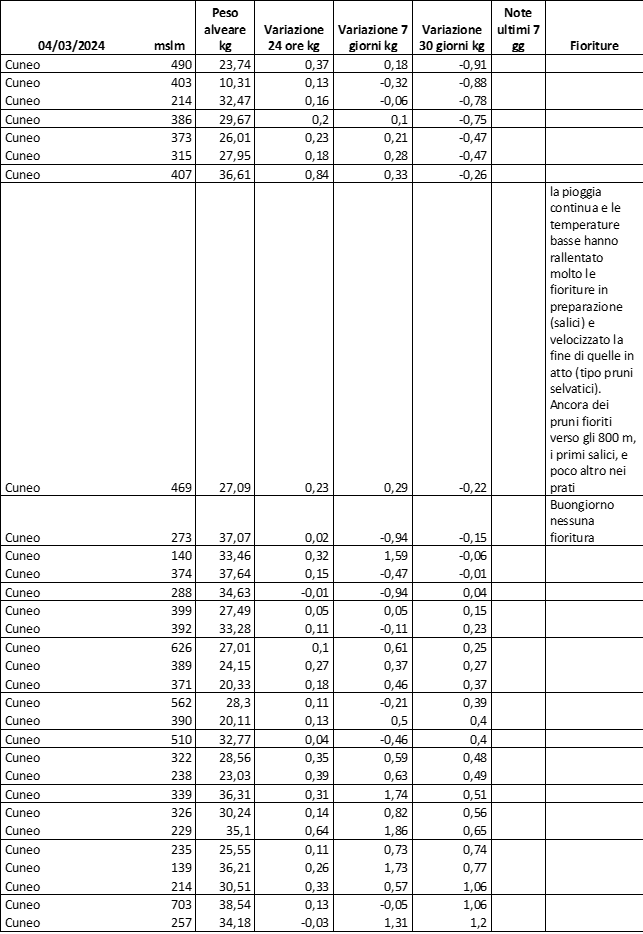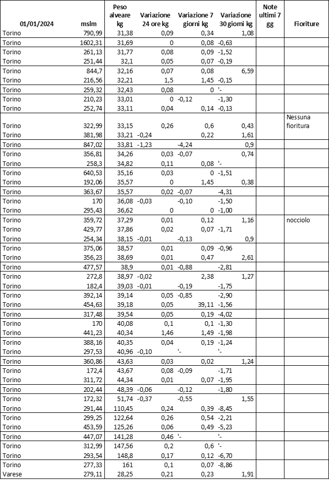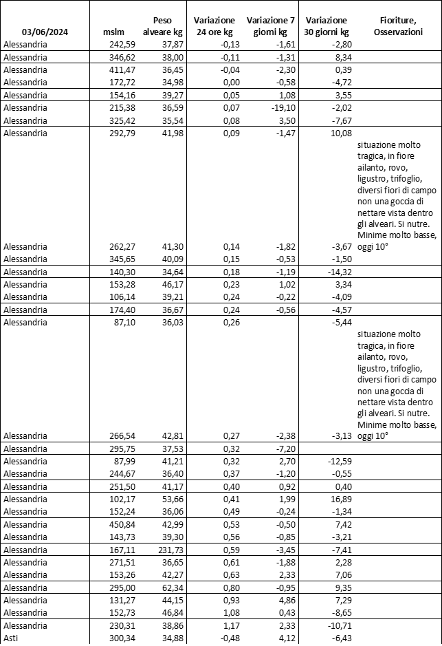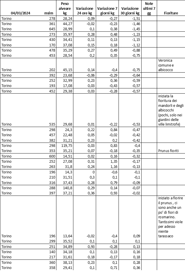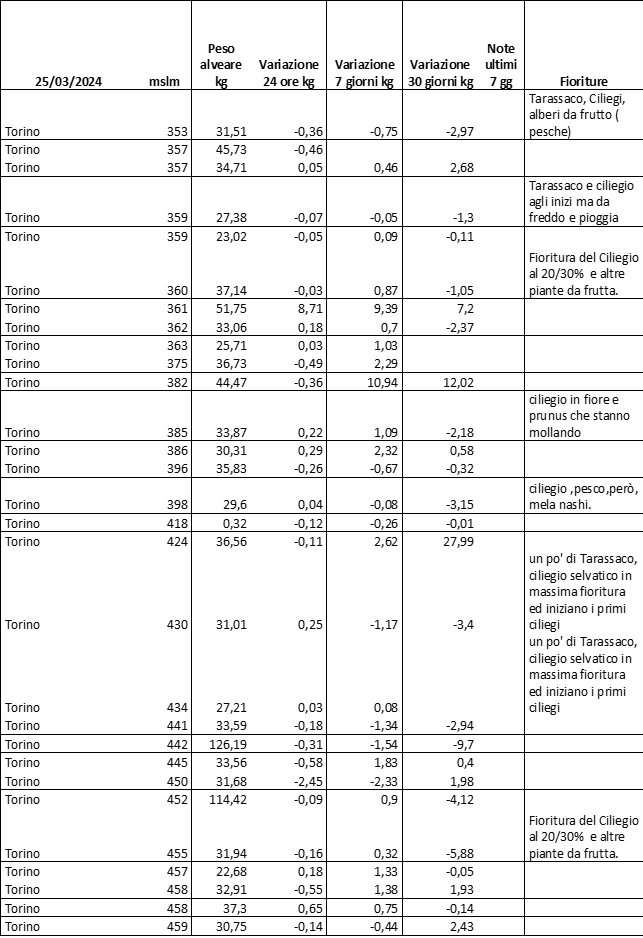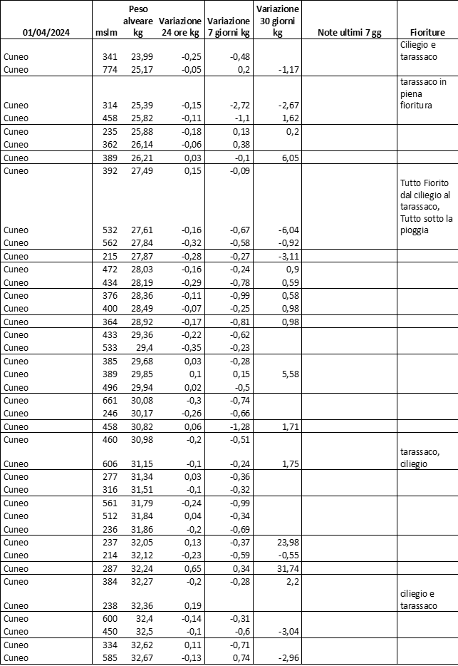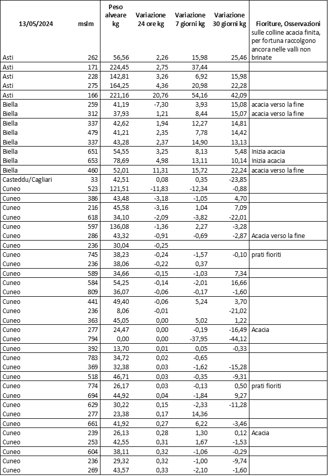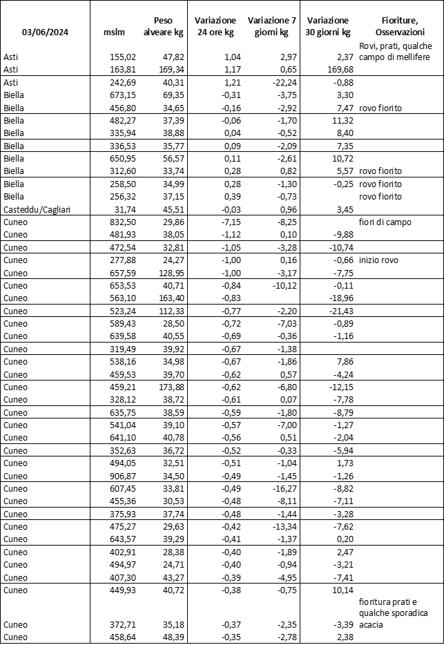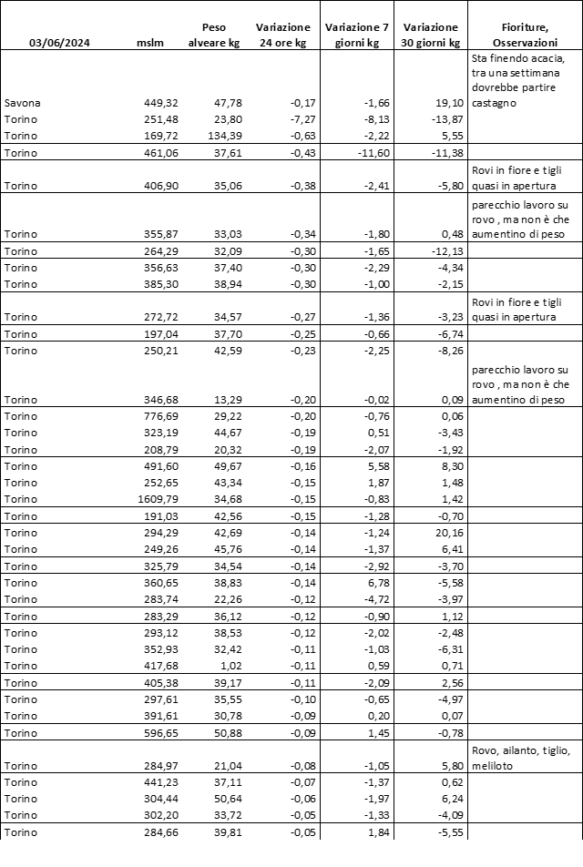 E’ prevista una comunicazione periodica a livello provinciale e altimetrica dei raccolti/consumi degli alveari.