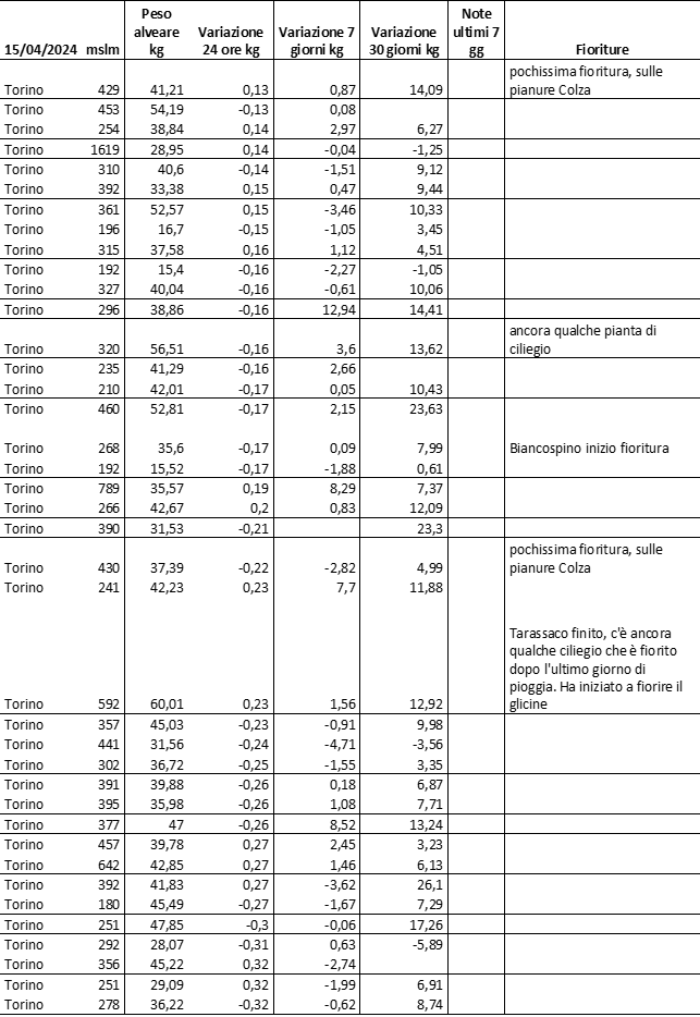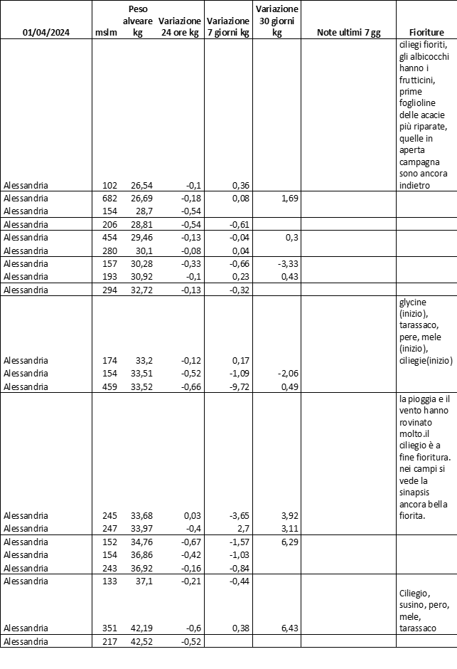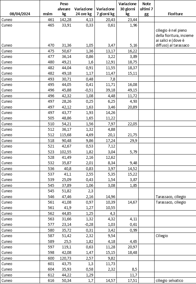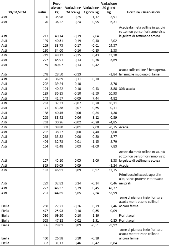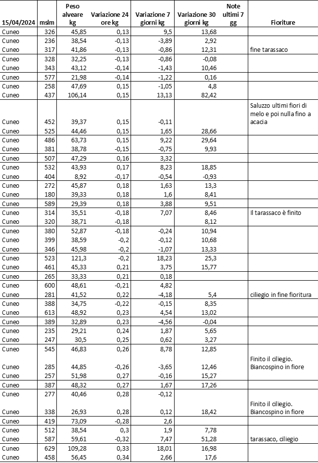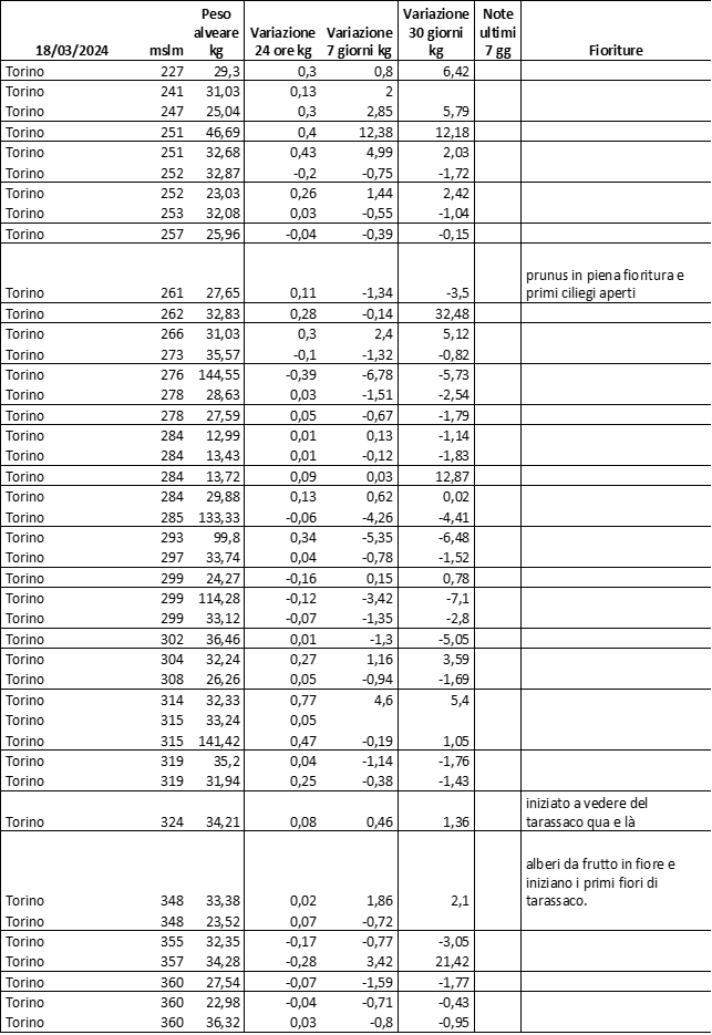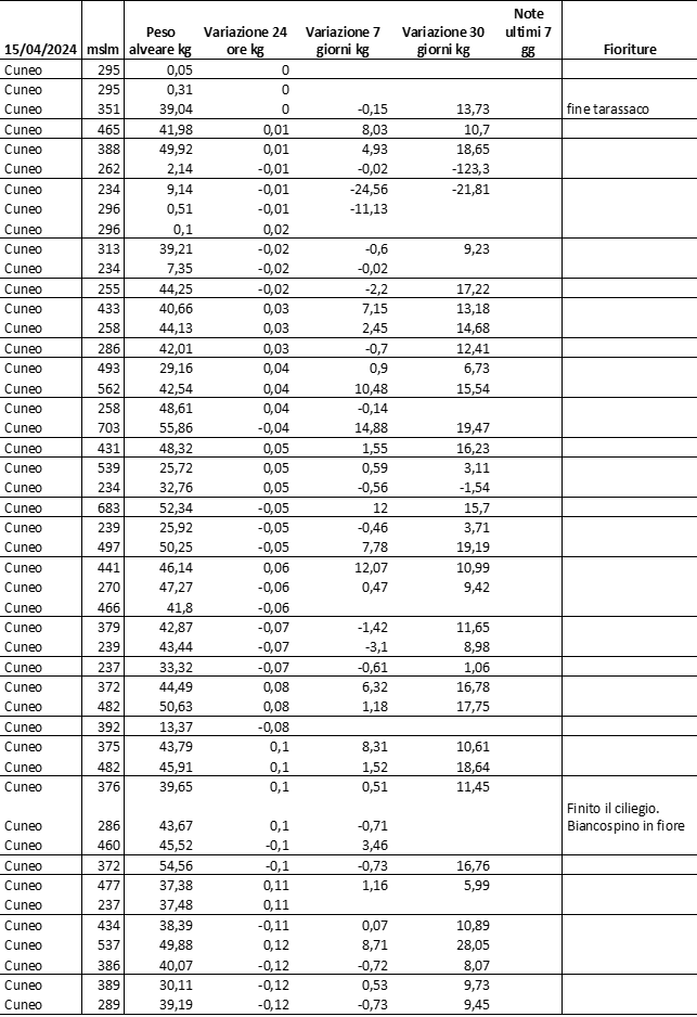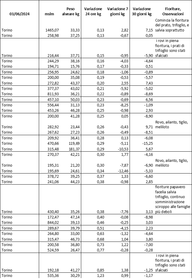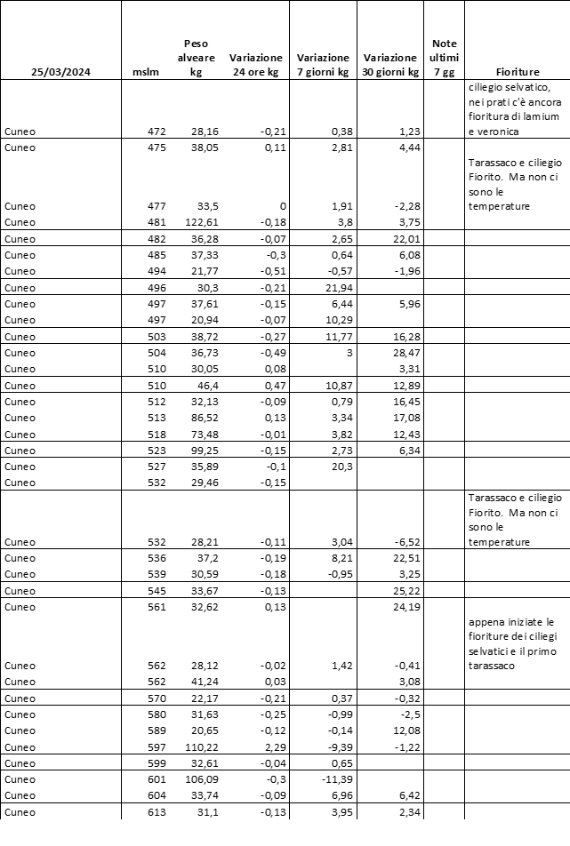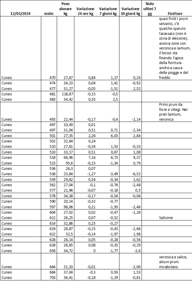 E’ prevista una comunicazione periodica a livello provinciale e altimetrica dei raccolti/consumi degli alveari.