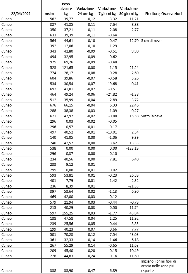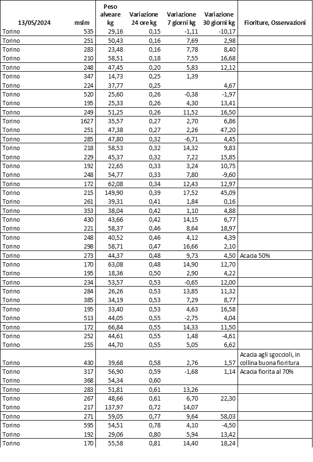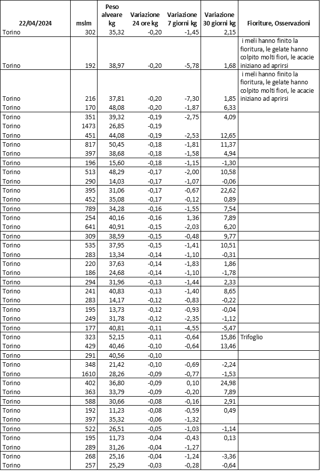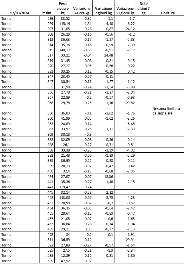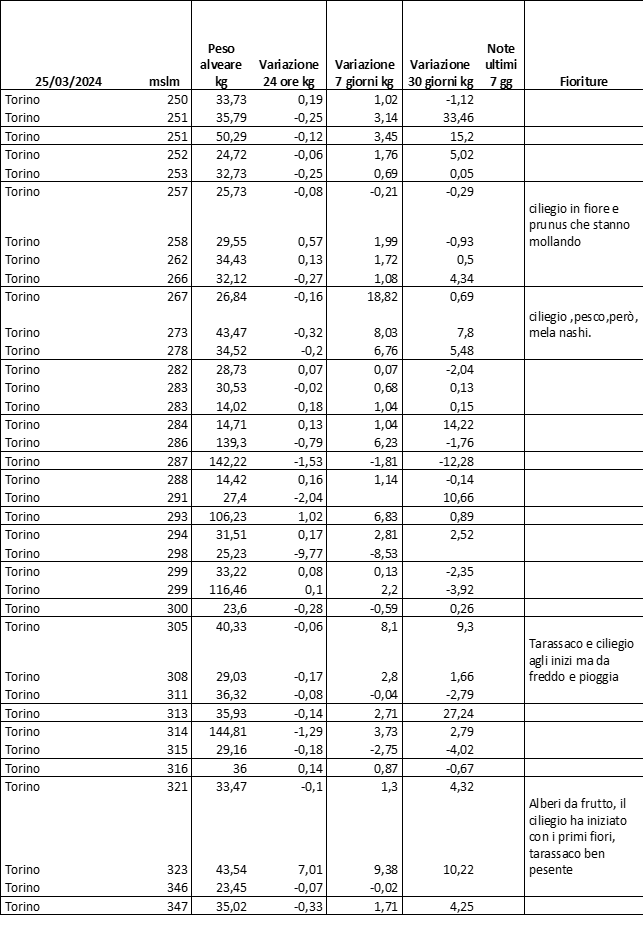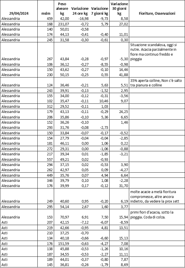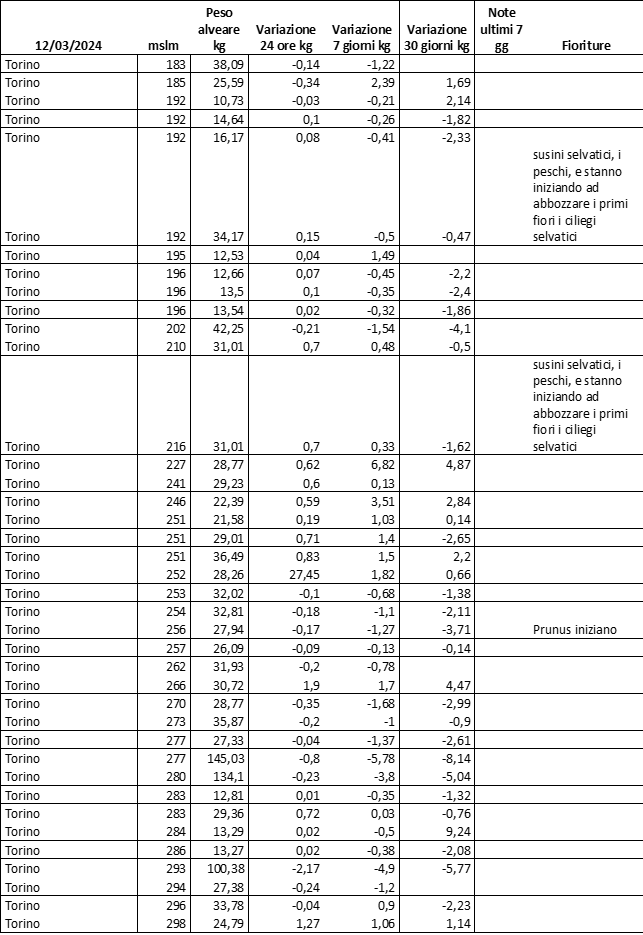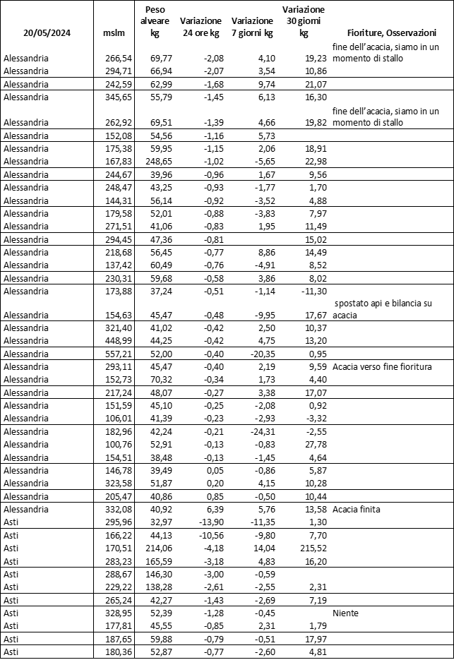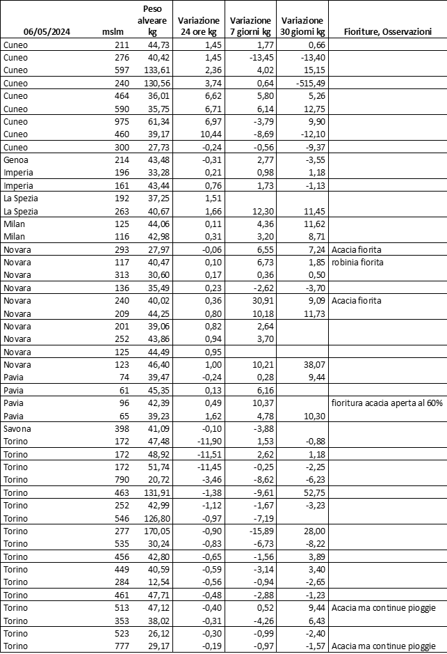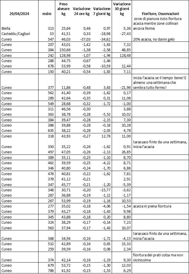 E’ prevista una comunicazione periodica a livello provinciale e altimetrica dei raccolti/consumi degli alveari.