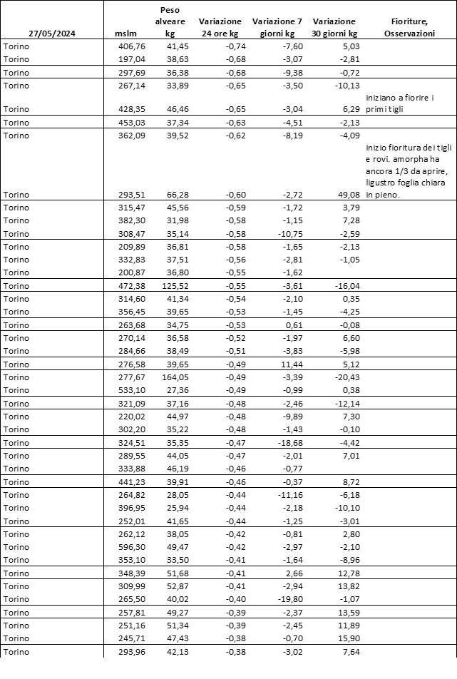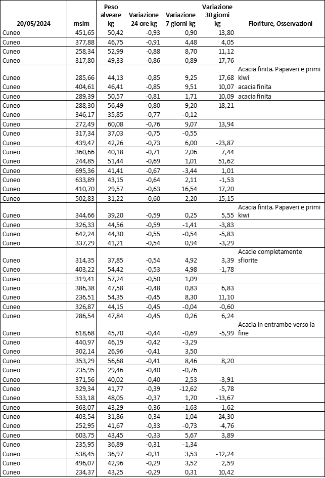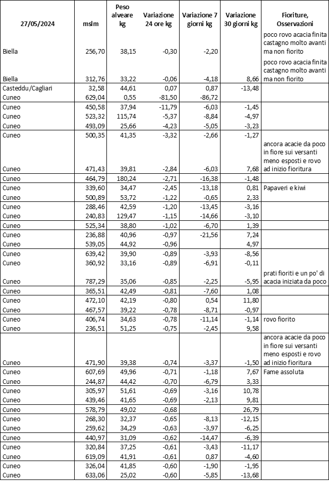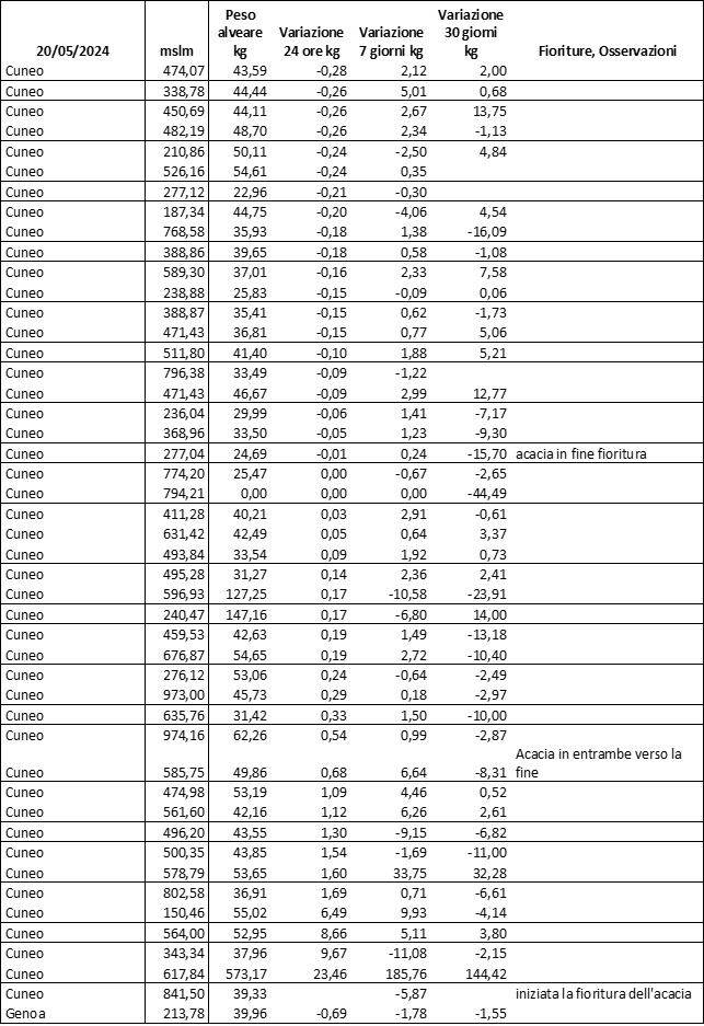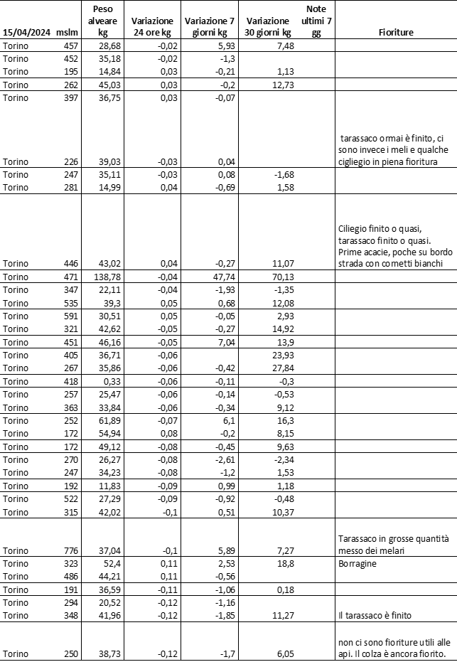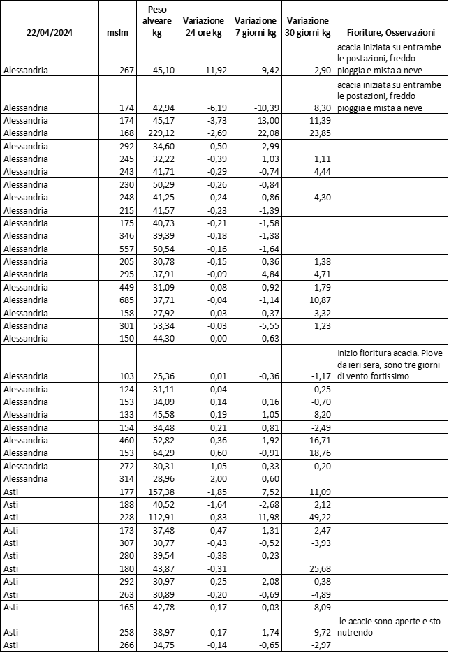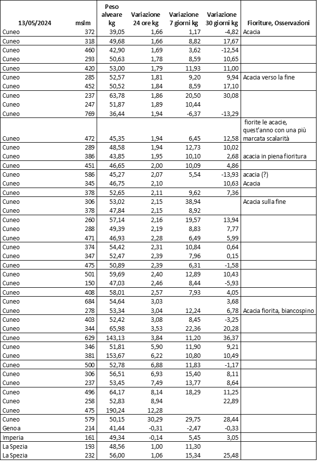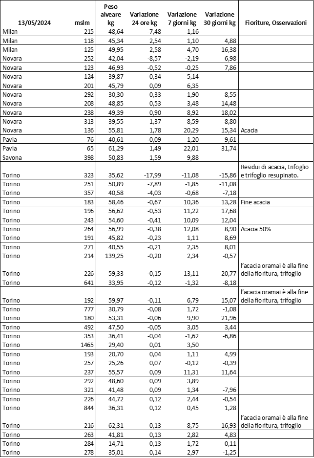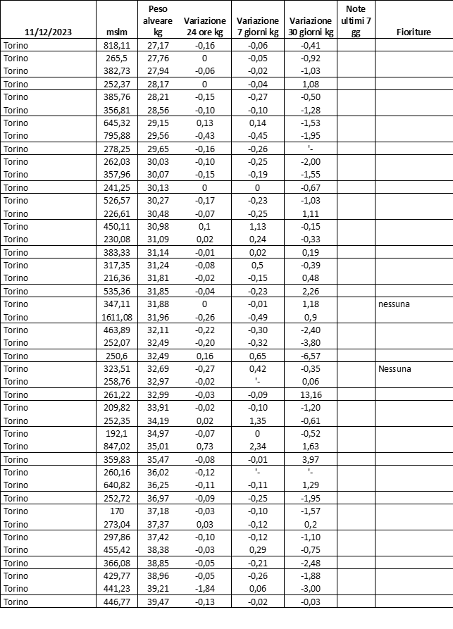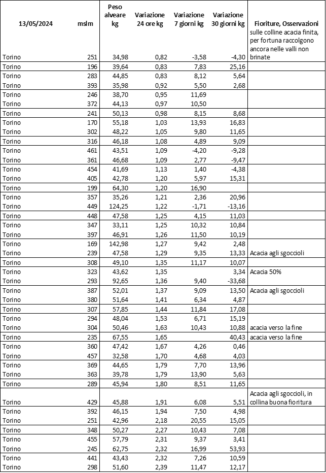 E’ prevista una comunicazione periodica a livello provinciale e altimetrica dei raccolti/consumi degli alveari.
