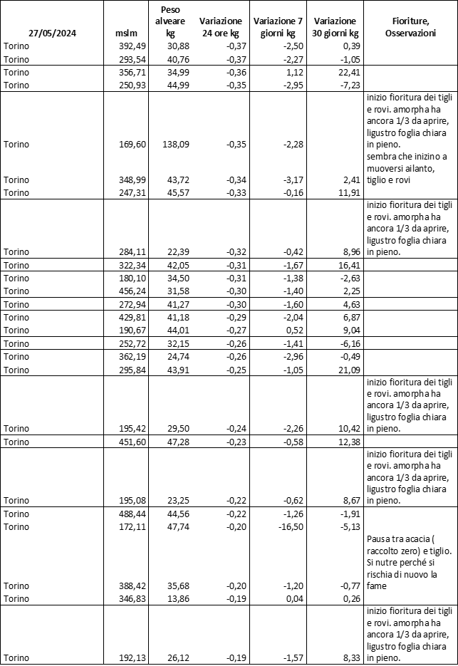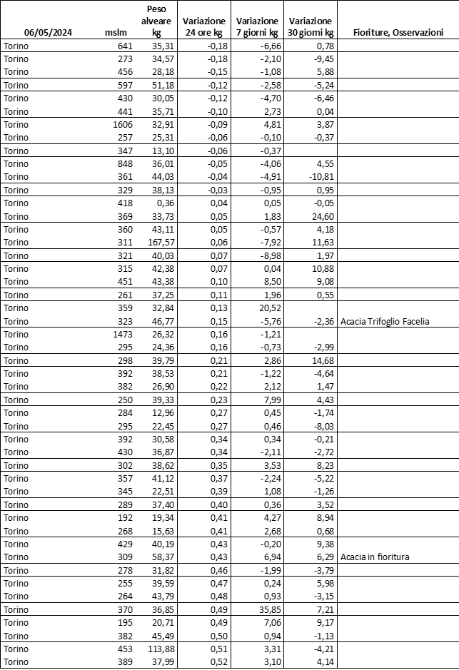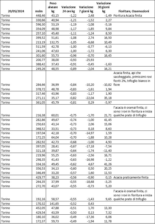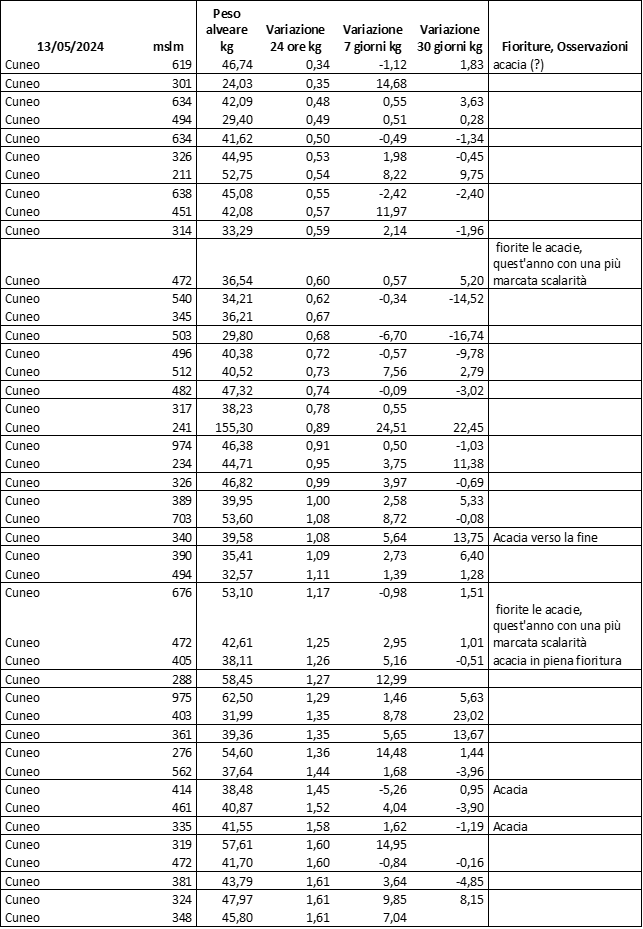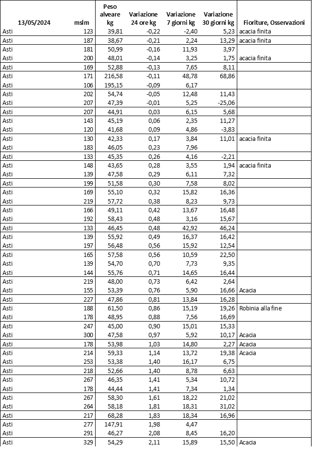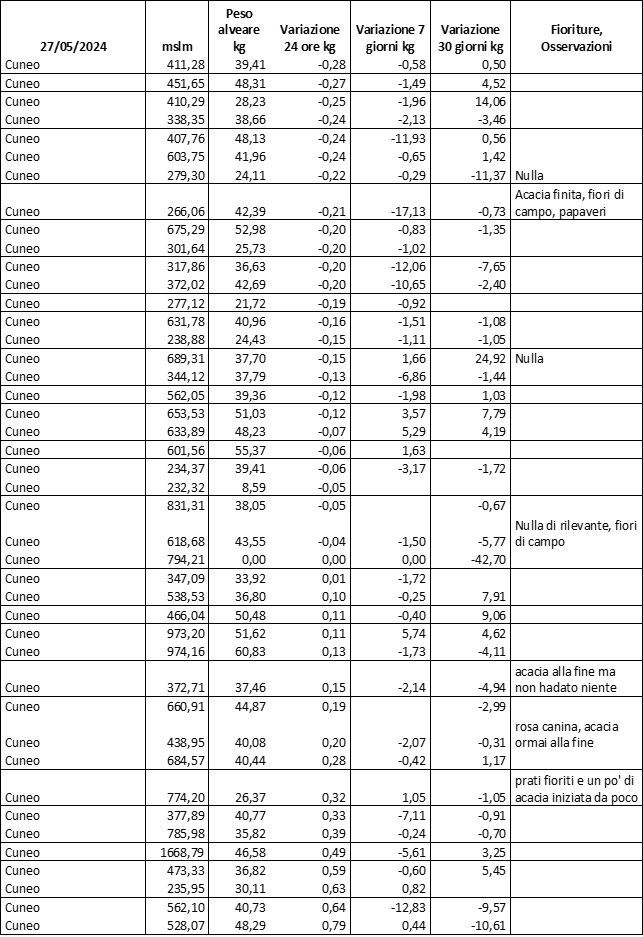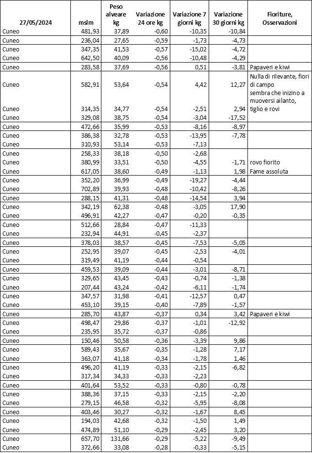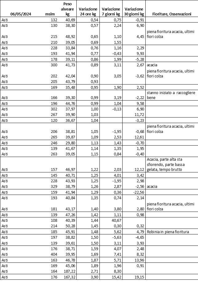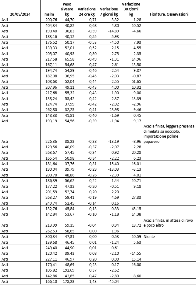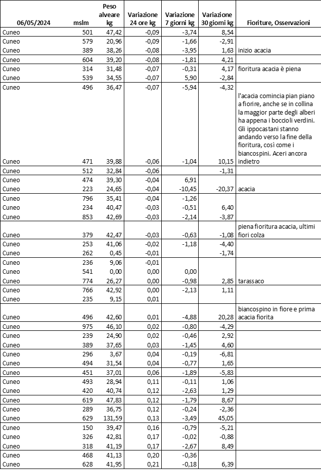 E’ prevista una comunicazione periodica a livello provinciale e altimetrica dei raccolti/consumi degli alveari.