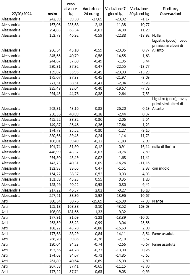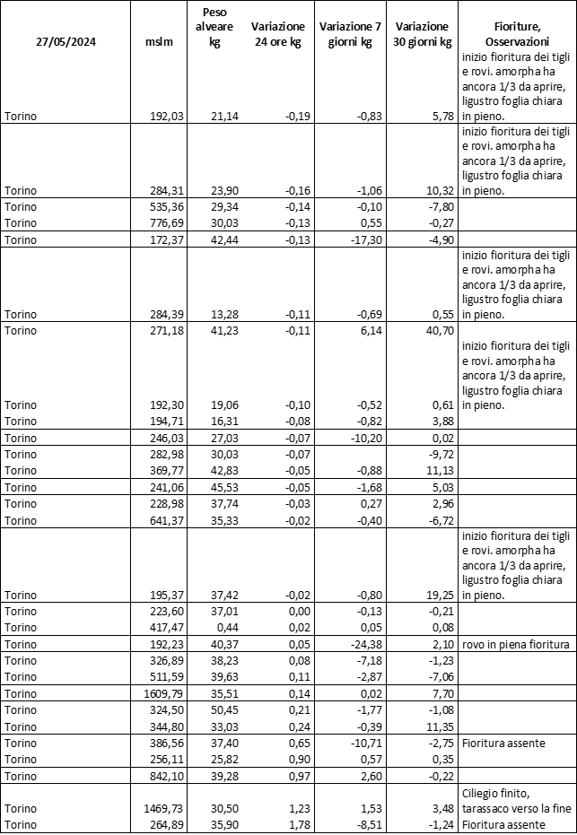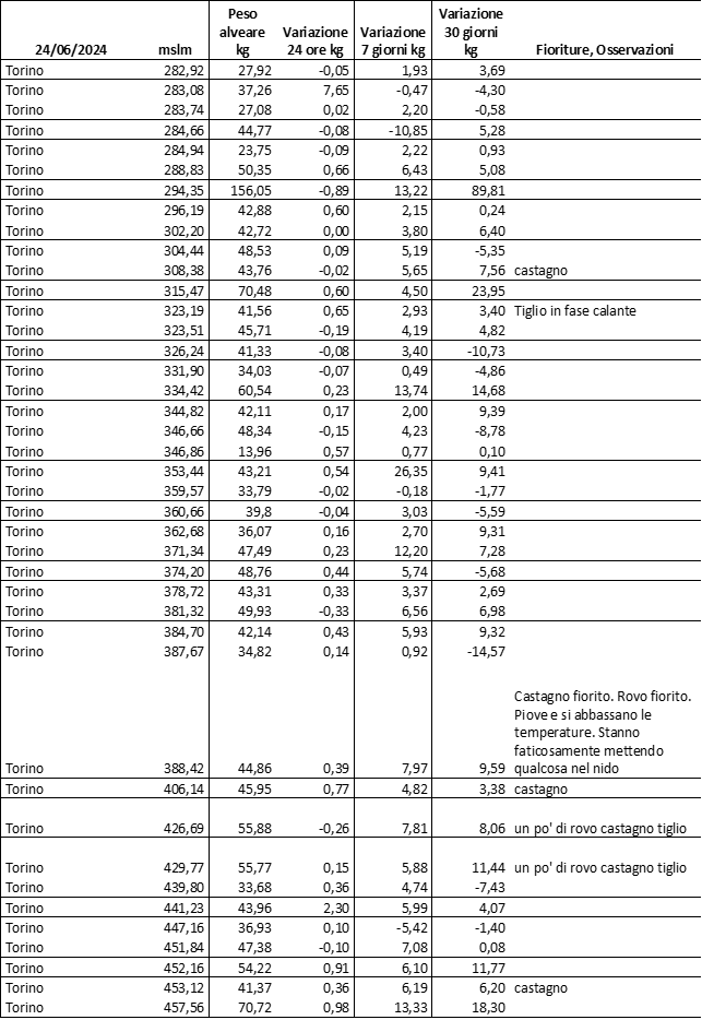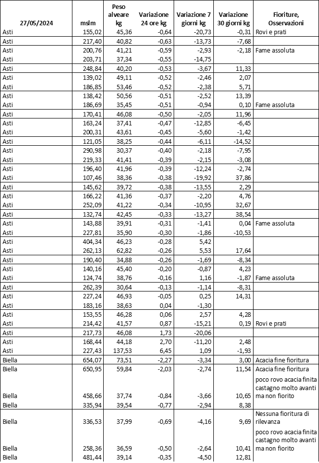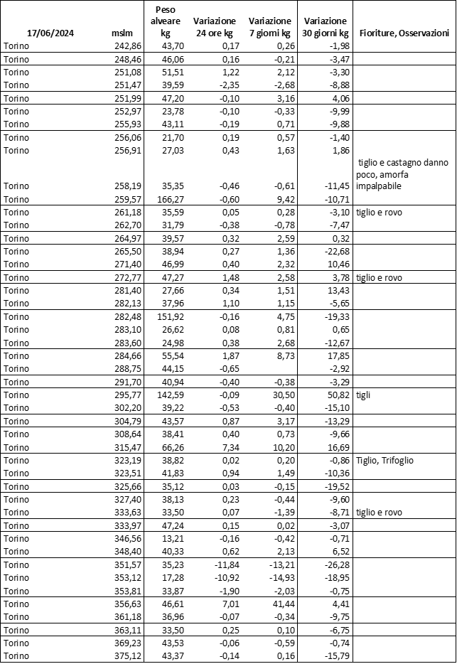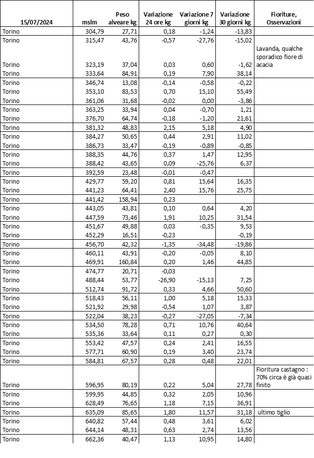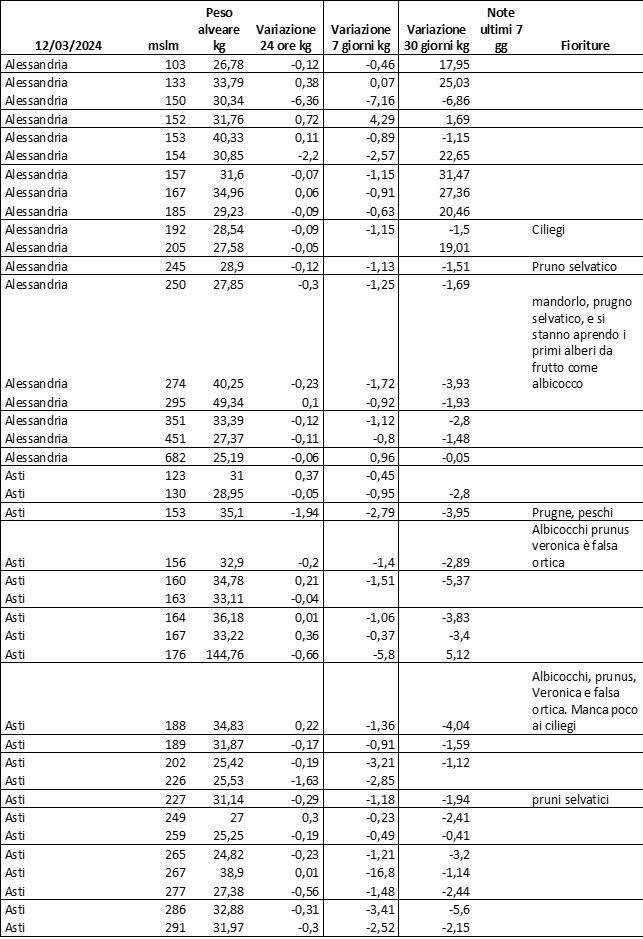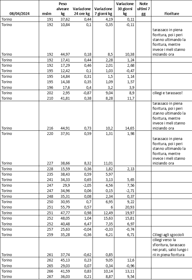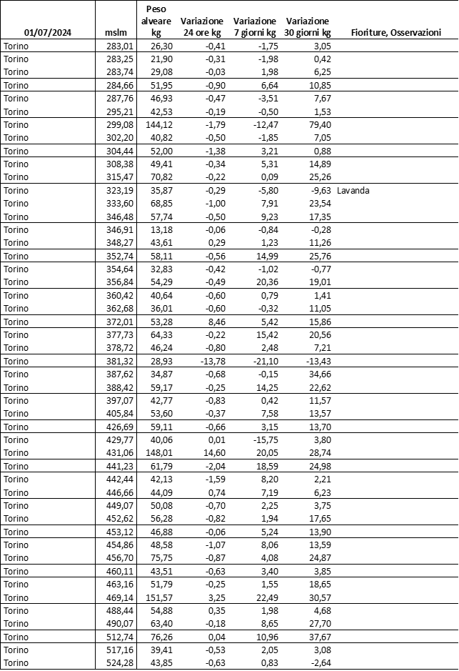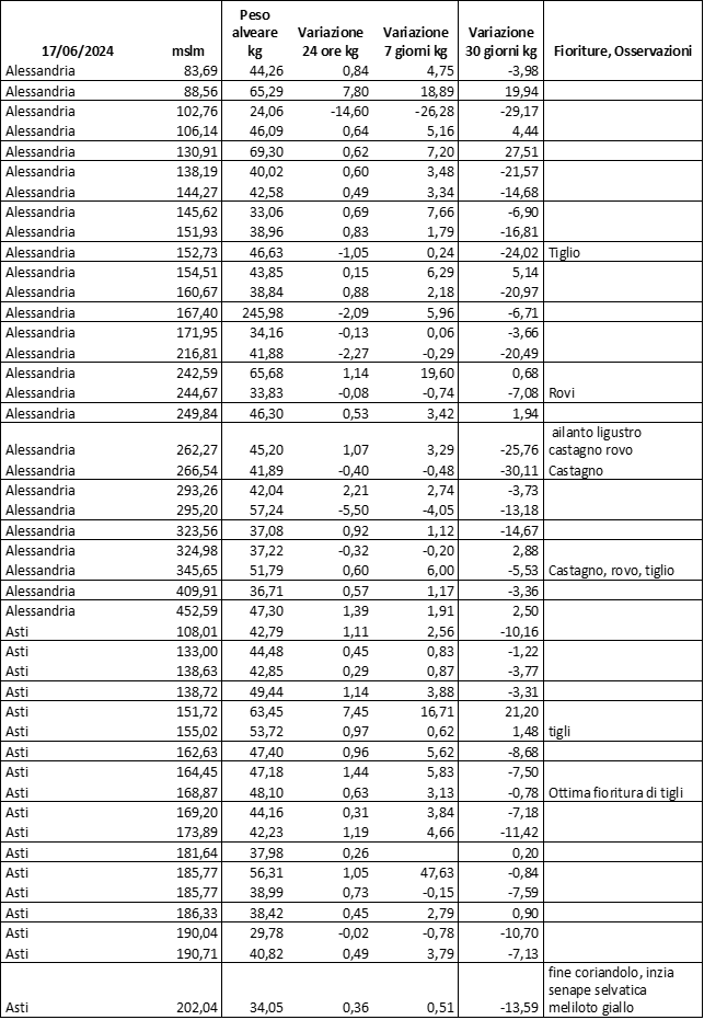 Di seguito le tabelle degli ultimi rilevamenti (dati fino al 15 luglio 2024; per consultare i dati successivi collegarsi al sito: (link non diretto, è necessario cliccare su “La bacheca dei bollettini” e poi su “Bollettino API”): https://www.regione.piemonte.it/web/temi/agricoltura/servizi-fitosanitari-pan