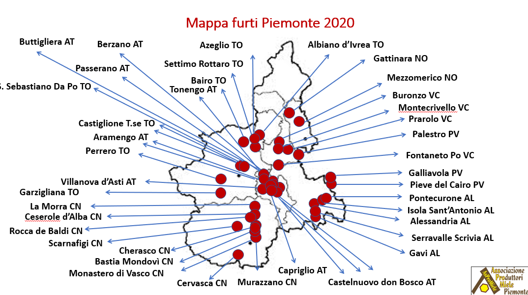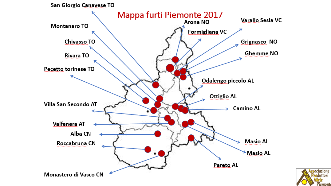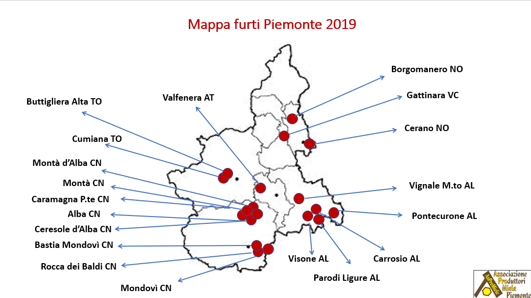 Invitiamo gli associati a segnalare al seguente indirizzo e-mail: monitoraggio.furti@aspromiele.it tutti i furti subiti nel recente passato e quelli che, eventualmente, potrebbero verificarsi in futuro.